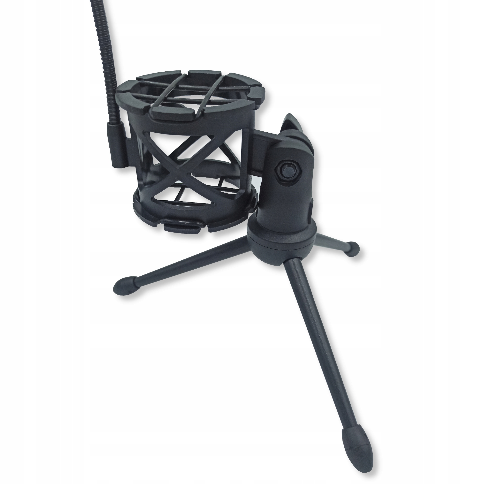 Koszyk antywstrząsowy to akcesorium montowane do mikrofonu, które ma na celu zredukowanie wstrząsów i drgań, które mogą wpłynąć na jakość nagrywanego dźwięku. Drgania i wstrząsy mogą powodować szumy, trzaski i innych zakłóceń w nagraniach, co może utrudnić ich edycję i utworzenie klarownego i czystego dźwięku.