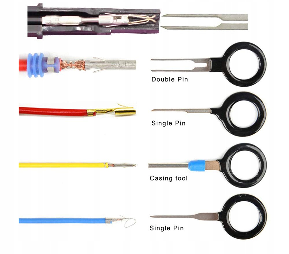 Przydatny zestaw "kluczy" do demontażu konektorów z kostek, złączek w instalacjach elektrycznych - samochodowych, motocyklowych, maszynach etc.