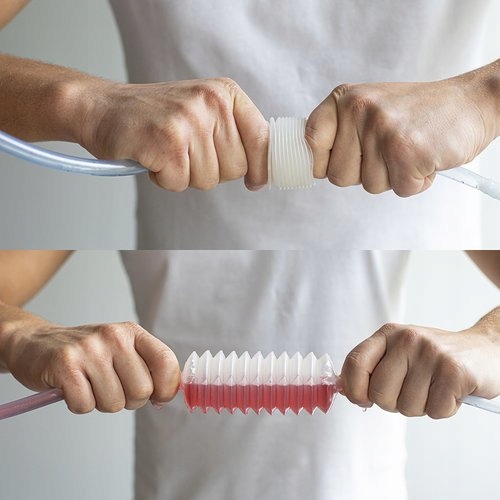 Wężyk do obciągu wina z plastikową pompką i zaciskiem - do butelkowania i przelewania płynów, elastyczny, długość 2m, średnica 8 mm.