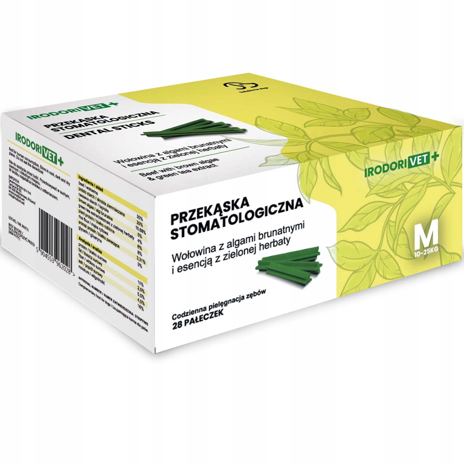 Przekąska stomatologiczna o smaku wołowiny z algami brunatnymi i esencją z zielonej herbaty marki Irodori Vet to przysmak z segmentu premium – pozbawiony zbóż, który dzięki specjalnym metodom suszenia, pozwala zachować wszystkie najważniejsze składniki naturalne i odżywcze. Redukuje kamień i osad nazębny oraz nieprzyjemny zapach. Zapobiega powstawaniu próchnicy i ogranicza powstawanie kamienia nazębnego.