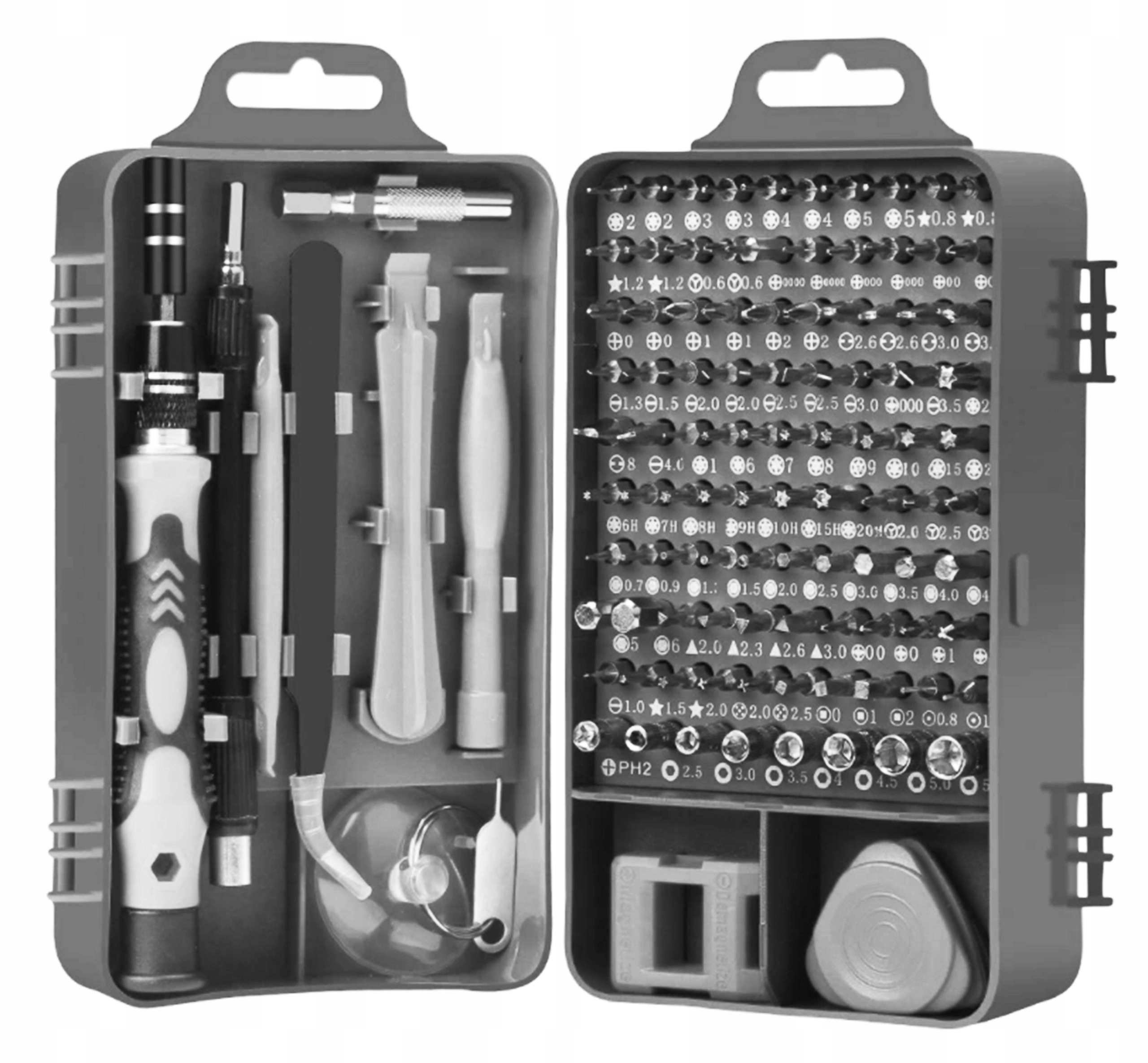 Profesjonalny zestaw składający się z 115 szt. narzędzi i końcówek przeznaczony do wszelkich napraw serwisowych sprzętu elektronicznego, telefonów i smartfonów w tym również produktów marki Apple.