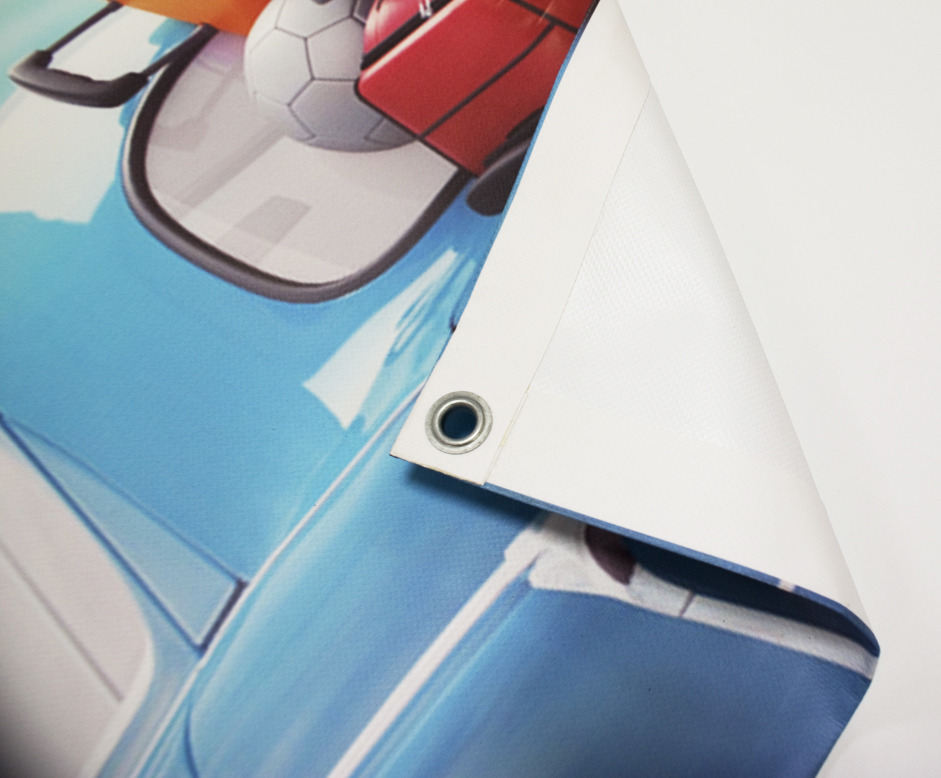 Uwaga: widniejący na miniaturce stojak oraz mocowania do baneru nie są przedmiotem aukcji! Jest to zdjęcie wystawowe. Aukcja dotyczy wyłącznie baneru reklamowego.
