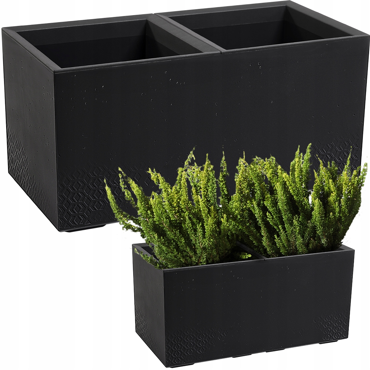 Kwietnik KARO poza walorami estetycznymi, produkty te posiadają wiele walorów funkcjonalnych. Charakterystyczne dla tej kolekcji są wzory powierzchni, które dzięki innowacyjnej metodzie wykonania, do złudzenia przypominają beton.