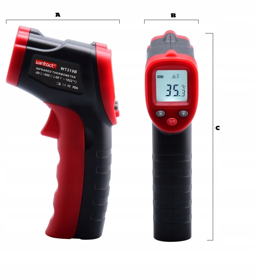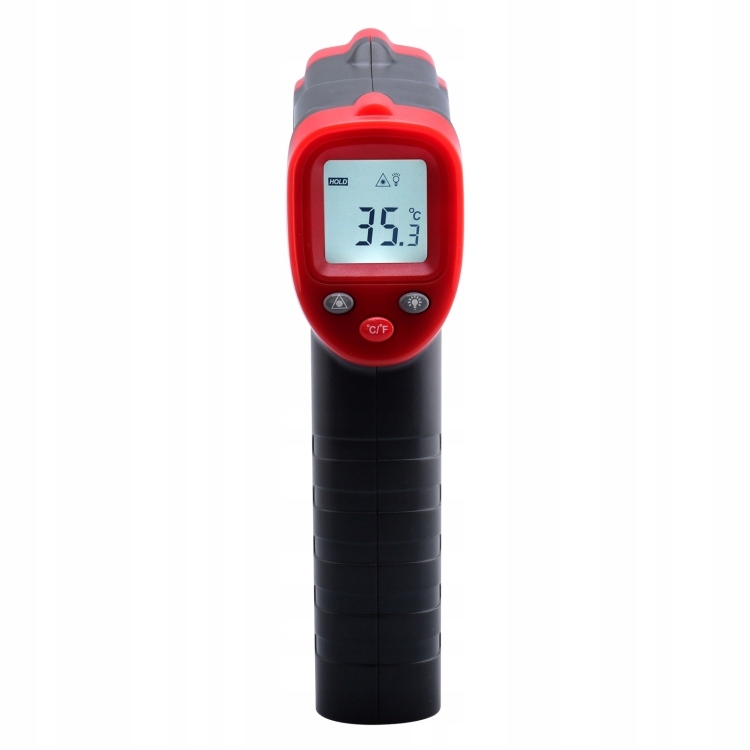Wysokiej jakości bezkontaktowy termometr wykorzystujący podczerwień do pomiaru temperatury w zakresie od -50 do 550 stopni Celsjusza.