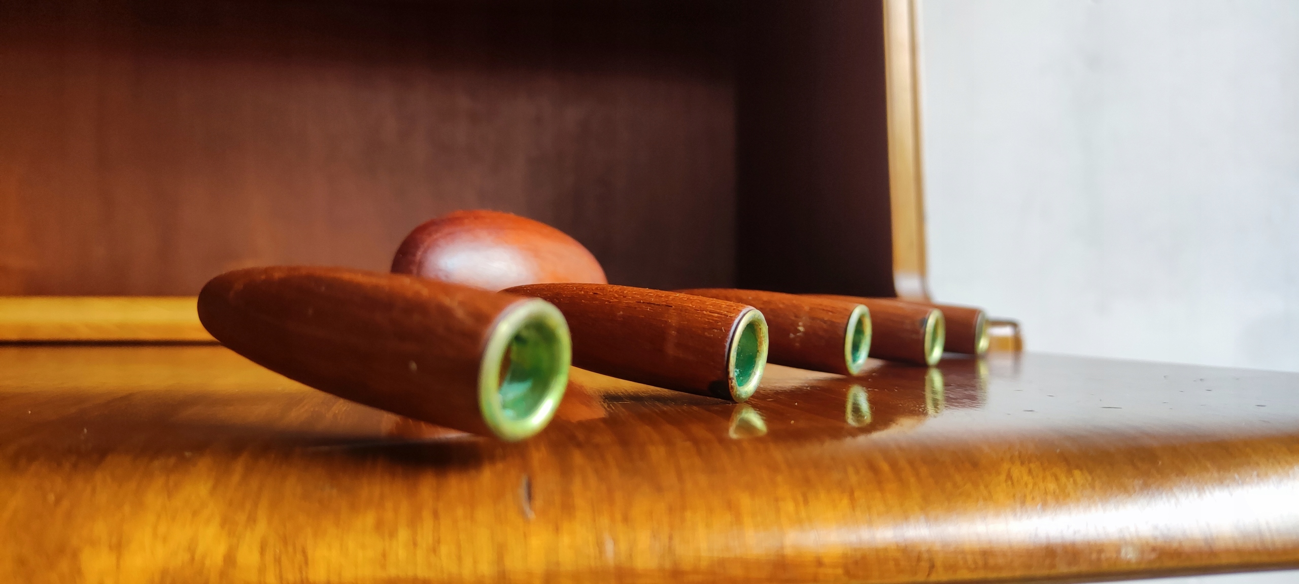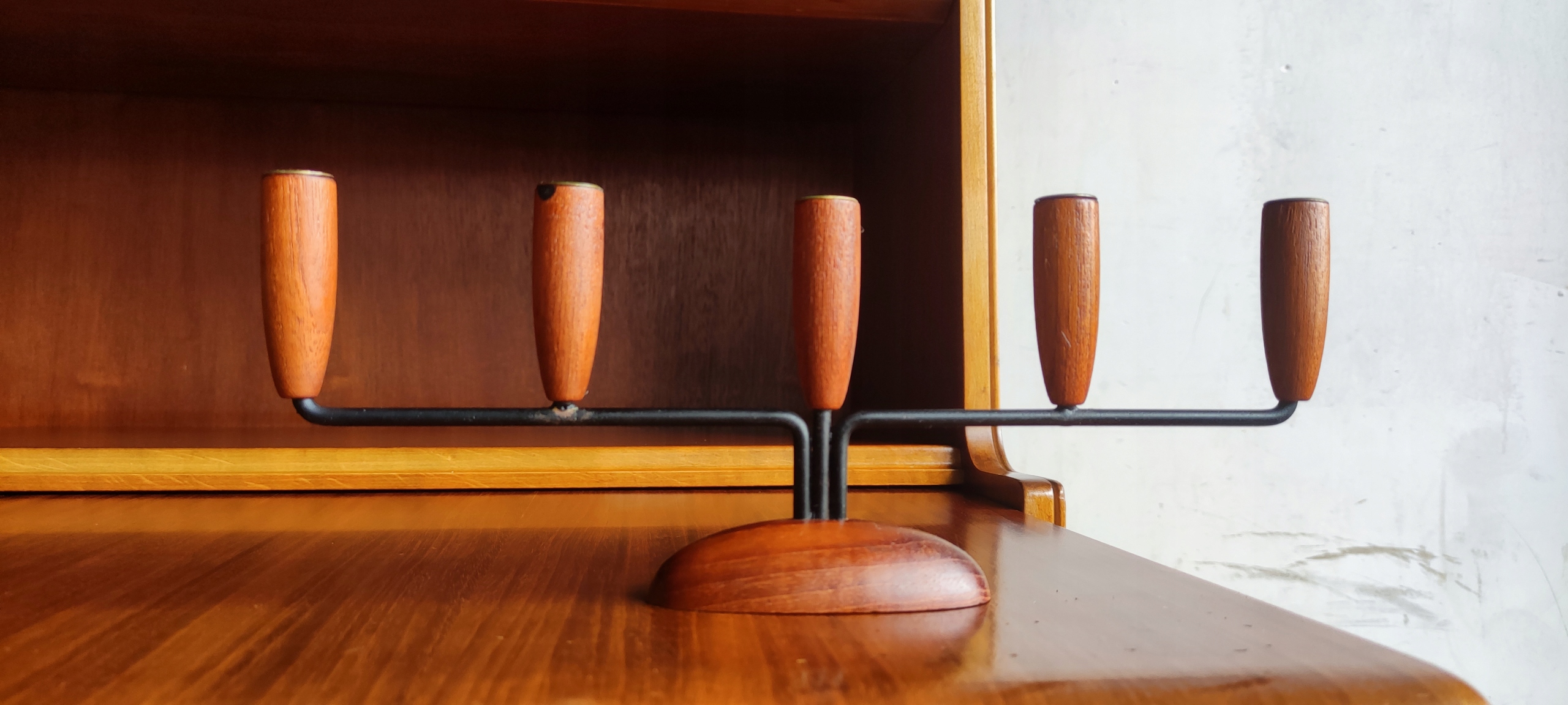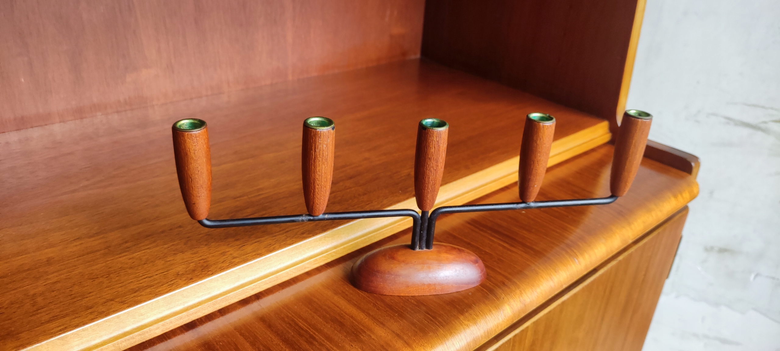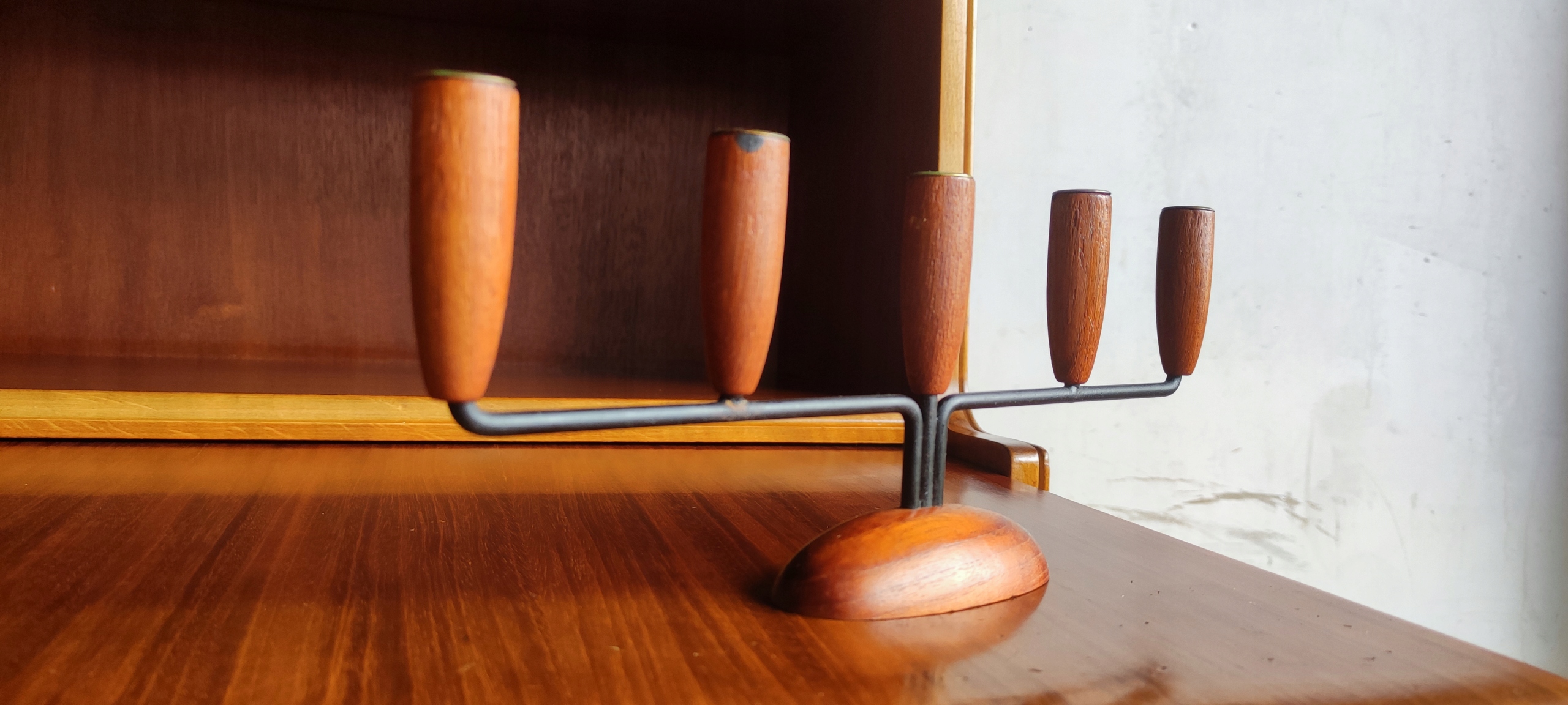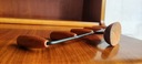 Wykonany z drewna tekowego i metalu.Stan zachowania; bardzo dobry z niewielkimi śladami użytku.