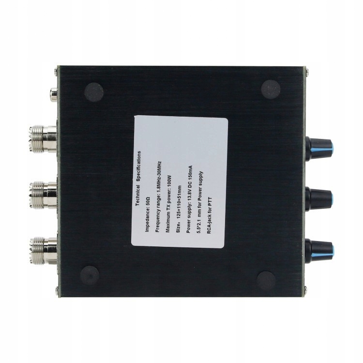 Moduł QRM Eliminator do skutecznej pracy wymaga podłączenia dodatkowej anteny do złącza opisanego AUX. W wersji V2 krótka antena teleskopowa 10-32cm jest w zestawie.