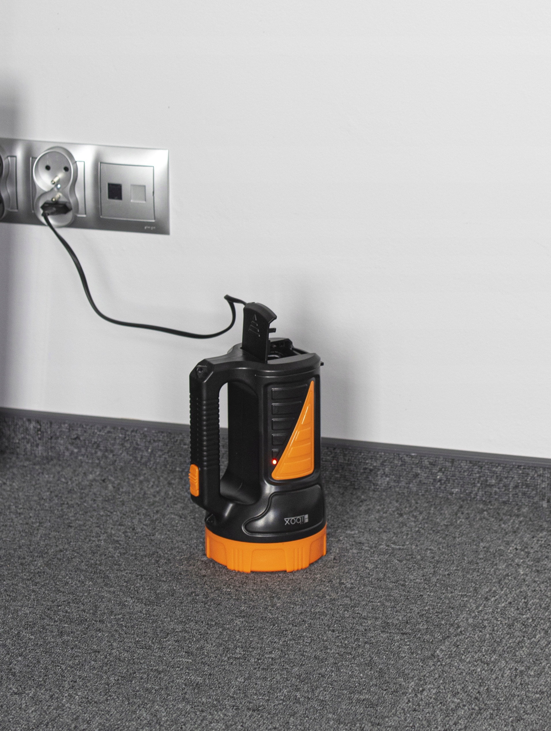 В корпусе также встроенное зарядное устройство. Чтобы зарядить аккумулятор, просто подключите в комплекте кабель с вилкой и включите в бытовую розетку 230V.