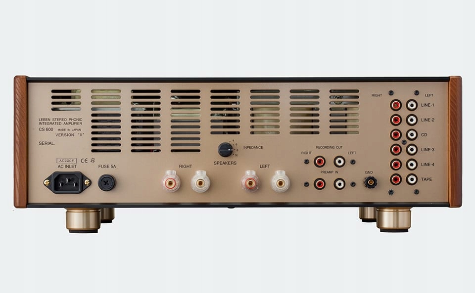 CS-600X поставляется с 6ca7/EL34 выходными лампами с возможностью дополнительного использование ламп 6l6. Это интегрированный усилитель, который также можно использовать как конец питания через переключатель на передней панели. Боковые панели из массива дерева.