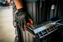 Прочная алюминиевая удобная ручка для удобной транспортировки. Профилированная ручка облегчит свободное передвижение с ящиком и возможность его в комплекте) повышает безопасность хранения аксессуаров для работы.