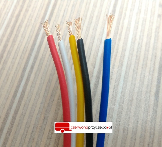 Przewód jest bardzo elastyczny. Każda żyła wewnątrz to linka, jest wyjątkowo mocna i wytrzymałe o przekroju 0,75mm2. Bardzo solidna i trwała izolacja doskonale zabezpiecza przed wilgocią. Stosowany w instalacjach w przyczepach i w lawetach do łączenia tylnych lamp między sobą lub jako główna wiązka do LAMPY lewej lub prawej.