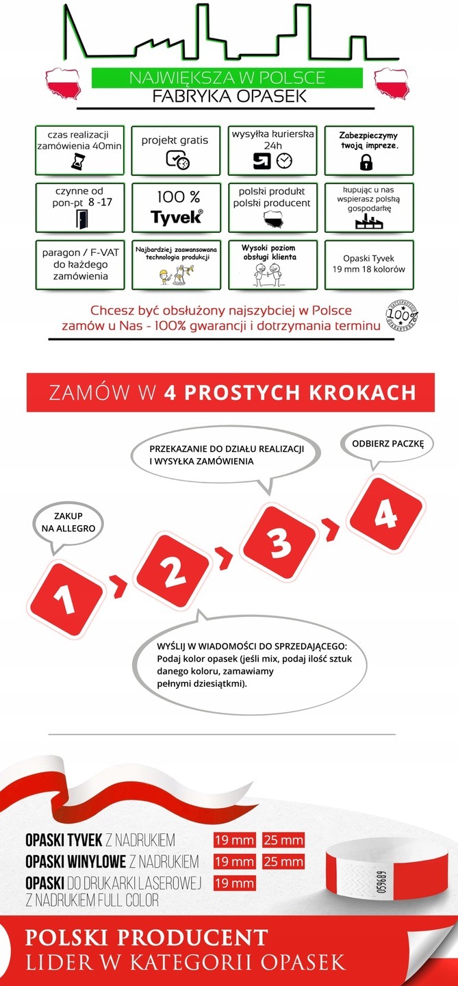 3. Bardzo szybka realizacja zamówienia (opaski bez nadruku wysyłamy w 12h, opaski z nadrukiem wysyłamy w ciągu 24h od momentu zatwierdzenia zamówienia).