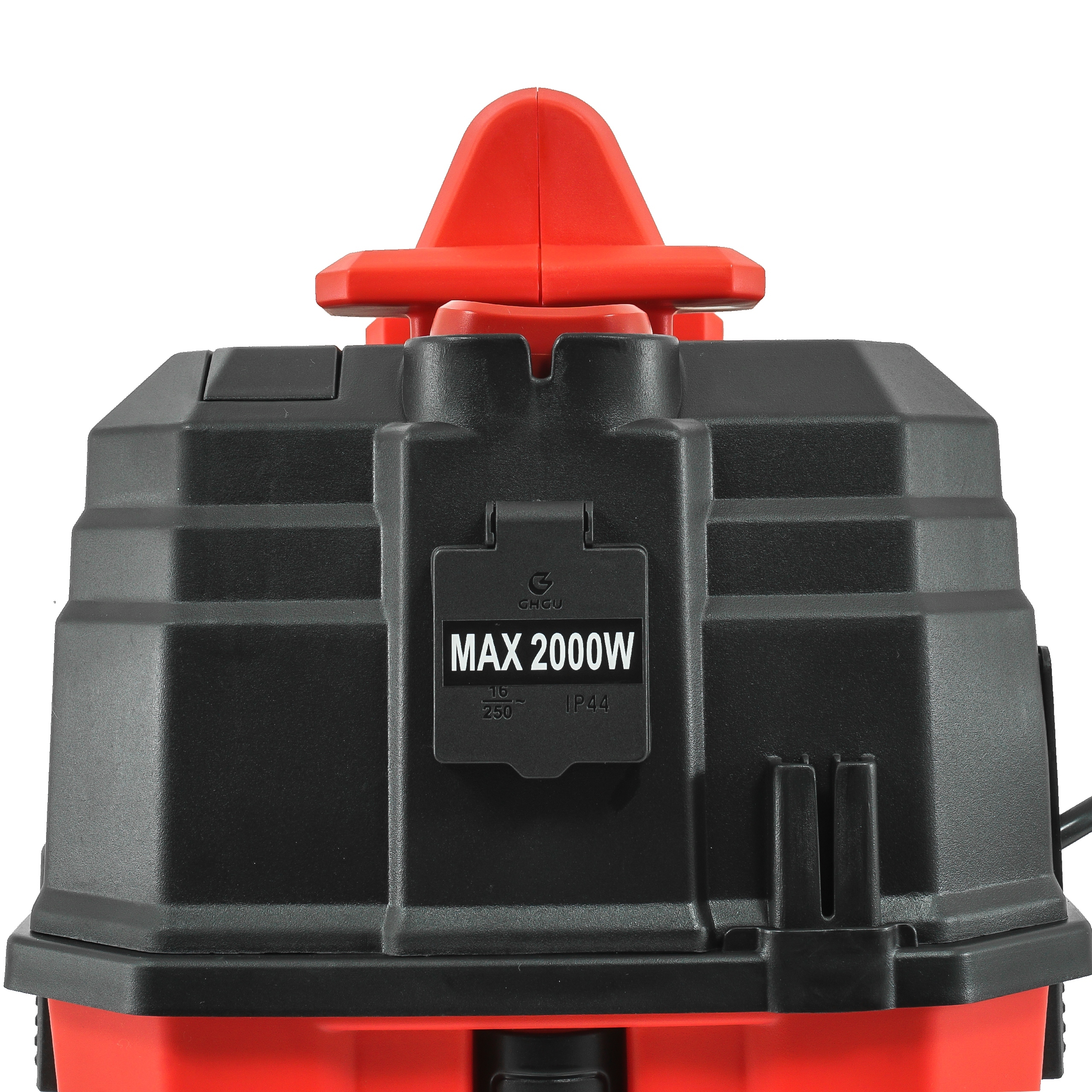 Встроенная розетка, расположенная в верхней части крышки пылесоса, используется для подключение электрических приборов и инструментов. Его можно использовать, например, вместе с шлифовальной машиной для штукатурки, шлифовальными машинами по дереву и другими электроинструментами, имеющими розетку пылеуловитель.
