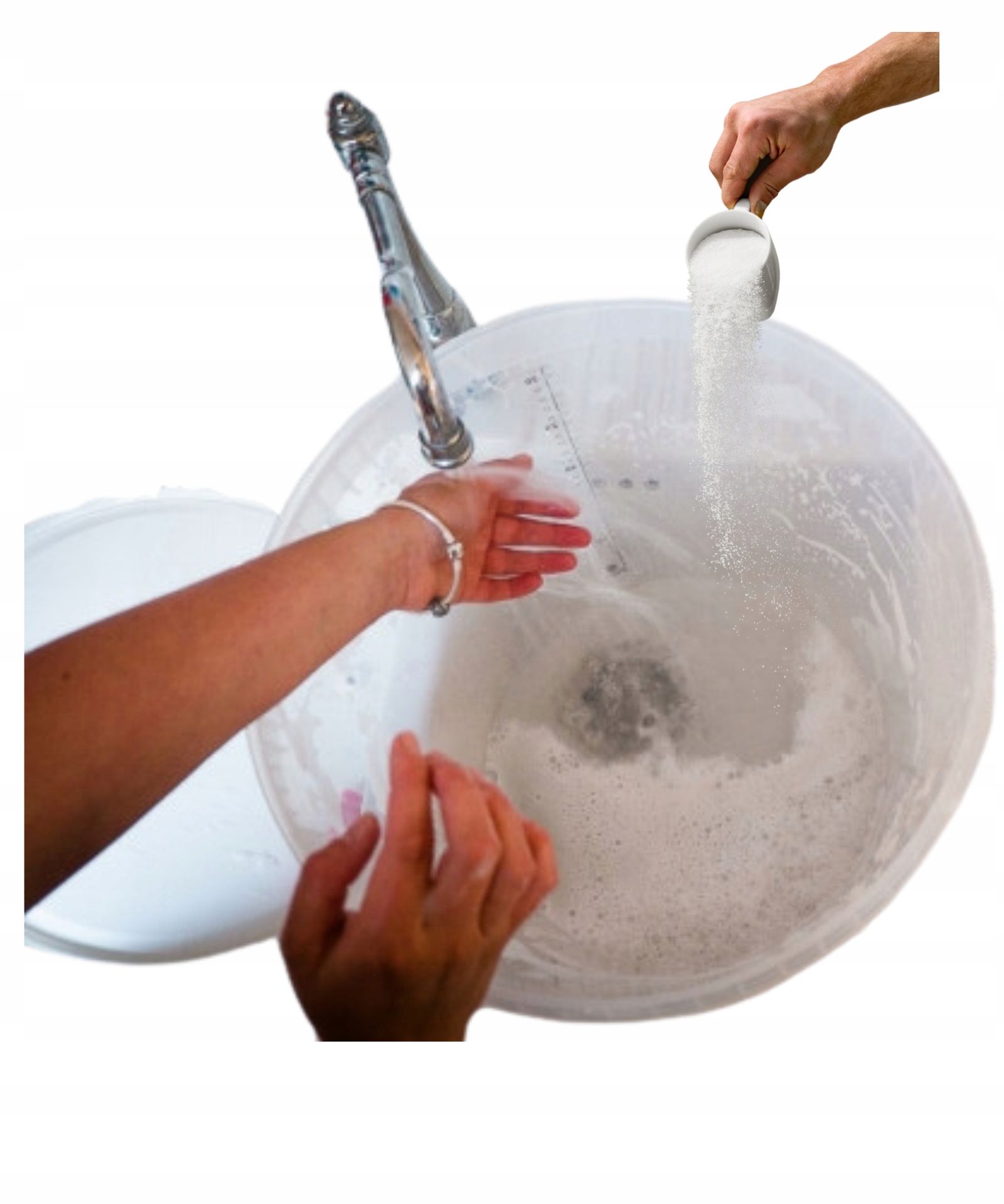 Uwaga: przy dłuższym czasie kontaktu może powstać nieszkodliwy biały osad wapienny, który można łatwo usunąć przez spłukanie roztworem octu lub kwasu cytrynowego.