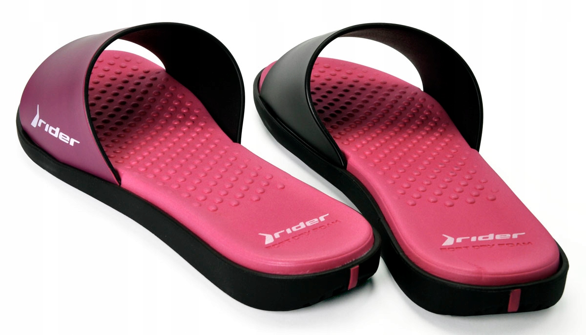Klapki to sztandarowy produkt marki Rider. Wykonane są z ekologicznego tworzywa bardzo starannie. Projektanci unikają zbędnych zdobień, stawiając na komfort i użyteczność. Są idealne na aktywne spędzanie ciepłych dni.
