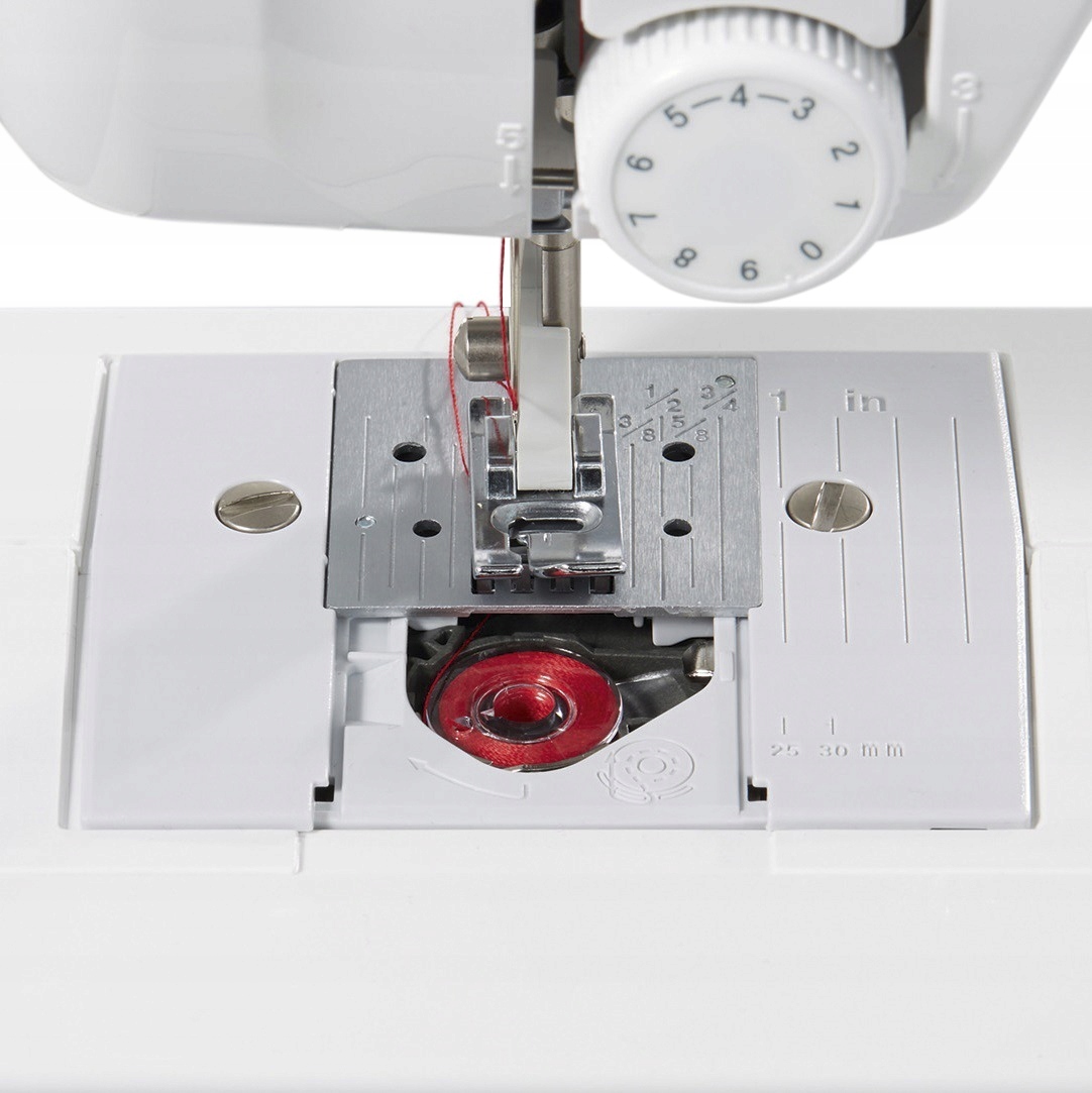 Mszyna BROTHER J17S to mechaniczna maszyna do szycia bardzo prosta i przyjazna w obsłudze. Znakomicie nadaje się na początek przygody z szyciem. Maszyna szyje idealnie równym ściegiem dzięki zastosowaniu sześciopunktowych ząbków. Posiada 14 podstawowych ściegów i program półautomatycznego obszycia dziurki. Zmiana ściegów odbywa się za pomocą prostego w obsłudze pokrętła.Użytkownik doceni oświetlenie pola pracy typu LED, które ułatwi realizację krawieckich projektów i jednocześnie zmniejszy liczbę pomyłek. Dodatkowym atutem maszyny jest instrukcja obsługi w języku polskim.