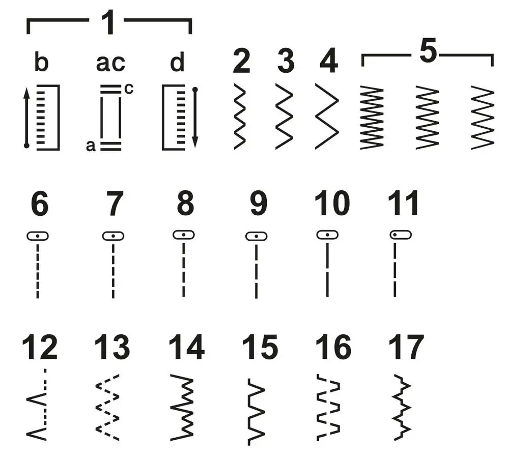 •14 niezbędnych programów ściegowych (ścieg prosty, zygzak, ścieg ślepy, ścieg elastyczny