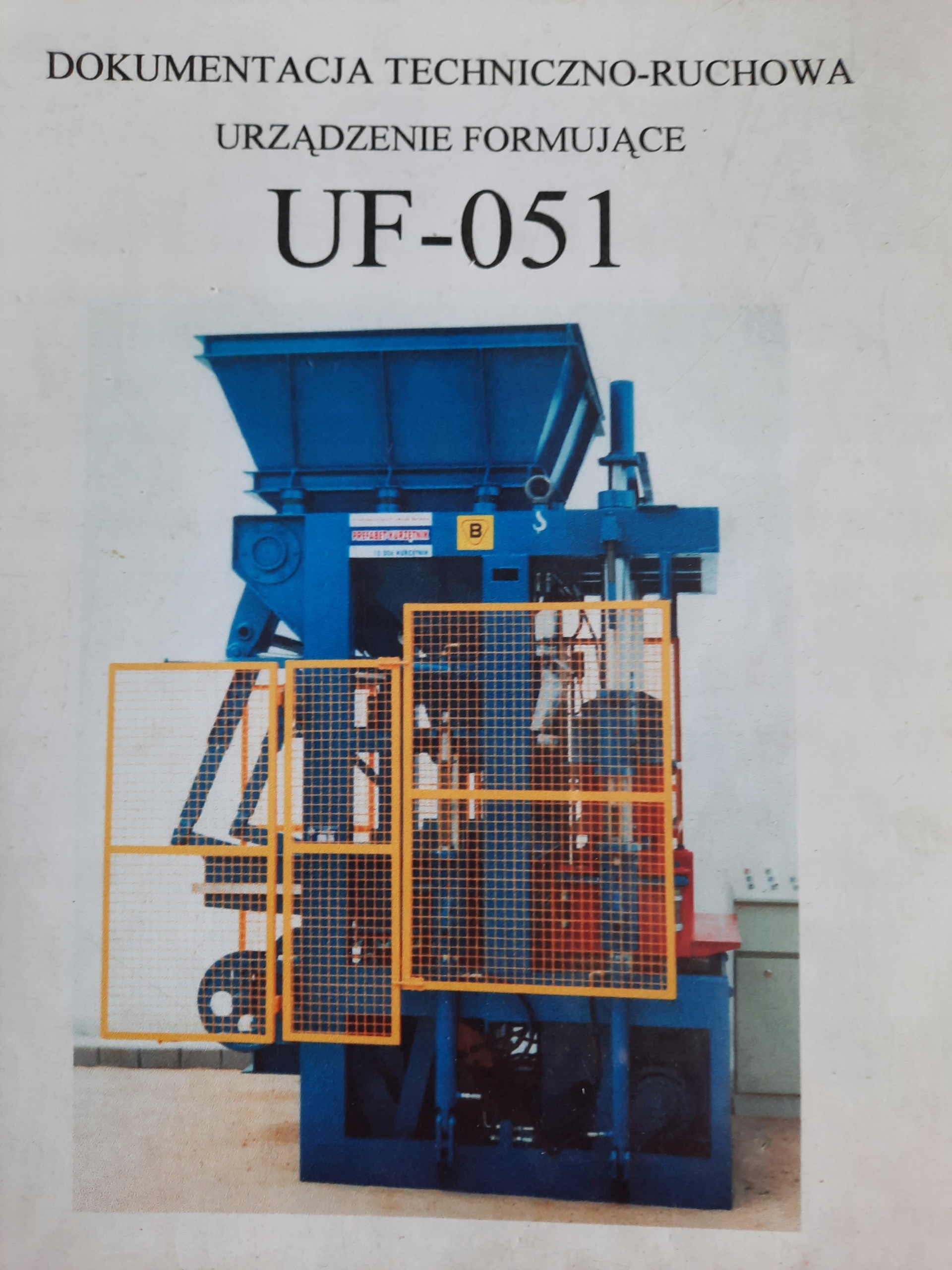 Urządzenie formujące UF-051 przeznaczone do produkcji drobnowymiarowych elementów nawierzchni drogowych (płytki chodnikowe, kostka brukowa, obrzeże trawnikowe, krawężnik drogowy, trylinka) pustaków ściennych i stropowych, okładzin elewacyjno-wykończeniowych, płyt ażurowych itp.