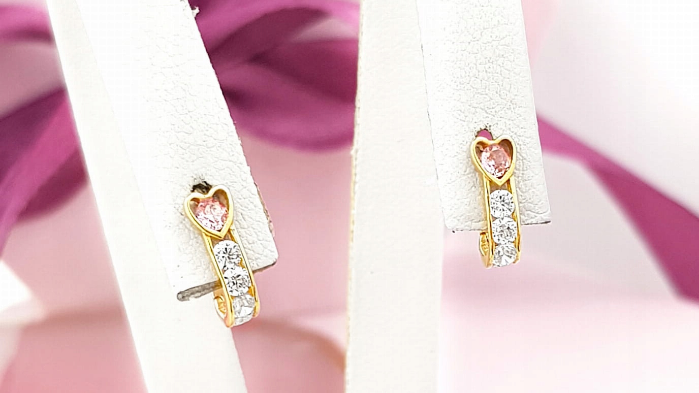☑️ Motyw serduszka z różową cyrkonią oraz białymi cyrkoniami