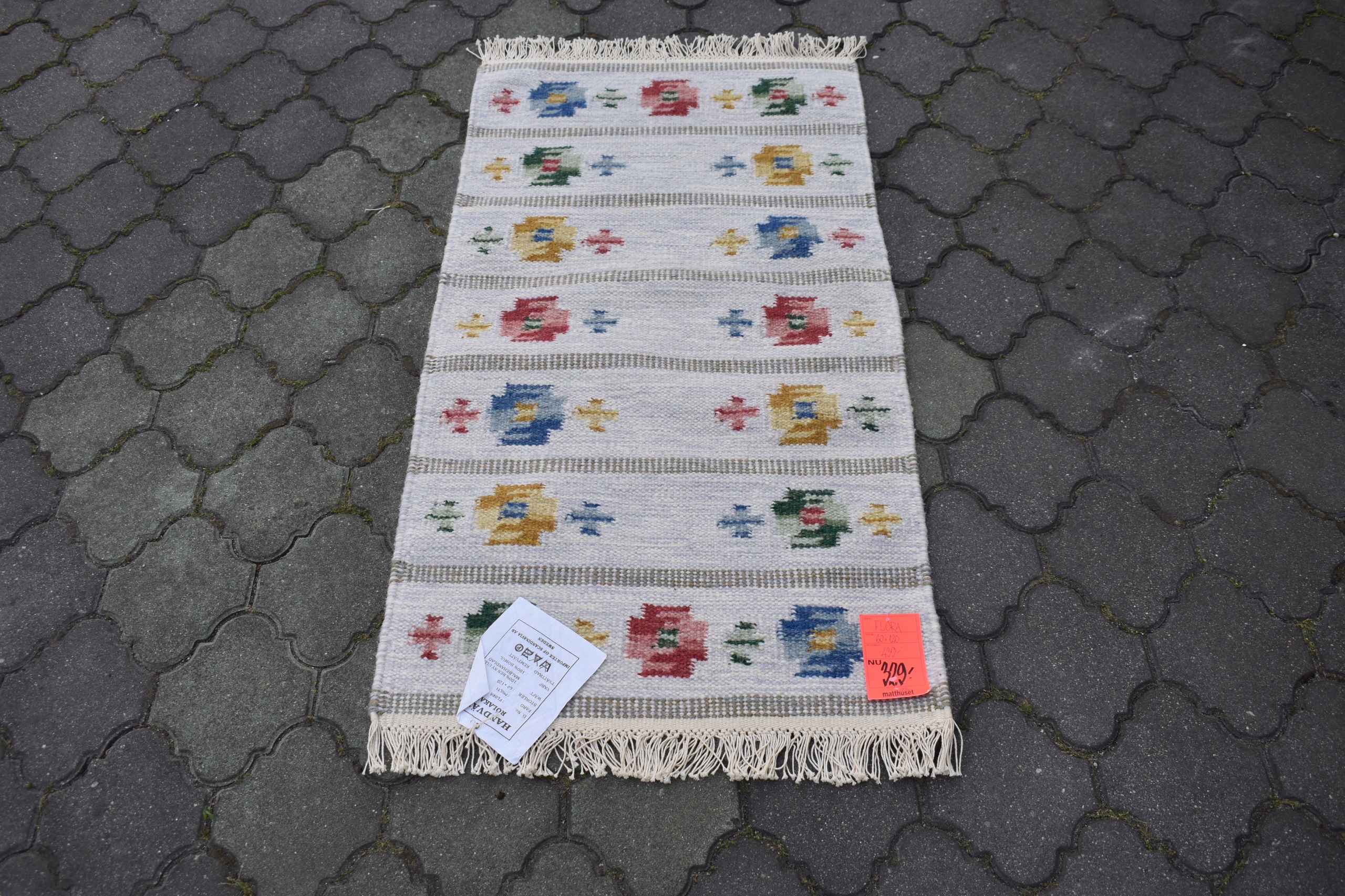Na kolejnej aukcji mam do zaoferowania Państwu oryginalny, wykonany z najwyższego gatunku wełny, misternie, ręcznie tkany - nowy szwedzki kilim !