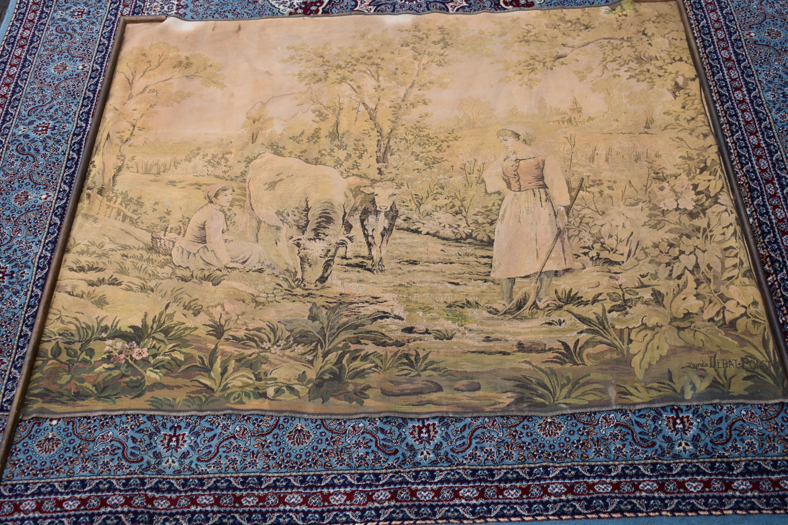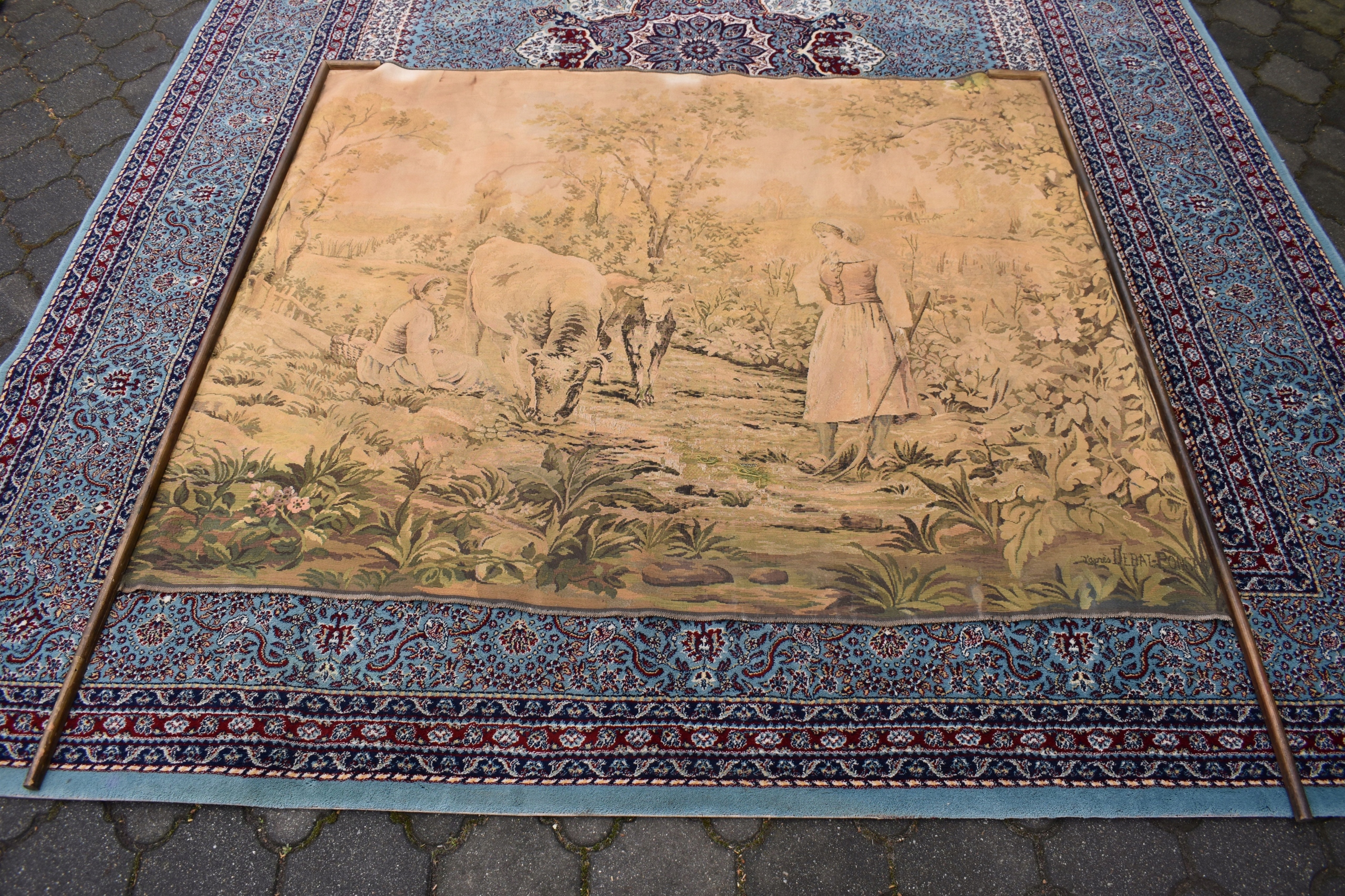 Na kolejnej aukcji mam do zaoferowania Państwu cenny, niespotykany, wykonany z wysokogatunkowej tkaniny dekoracyjnej sygnowany gobelin / tapiseria.