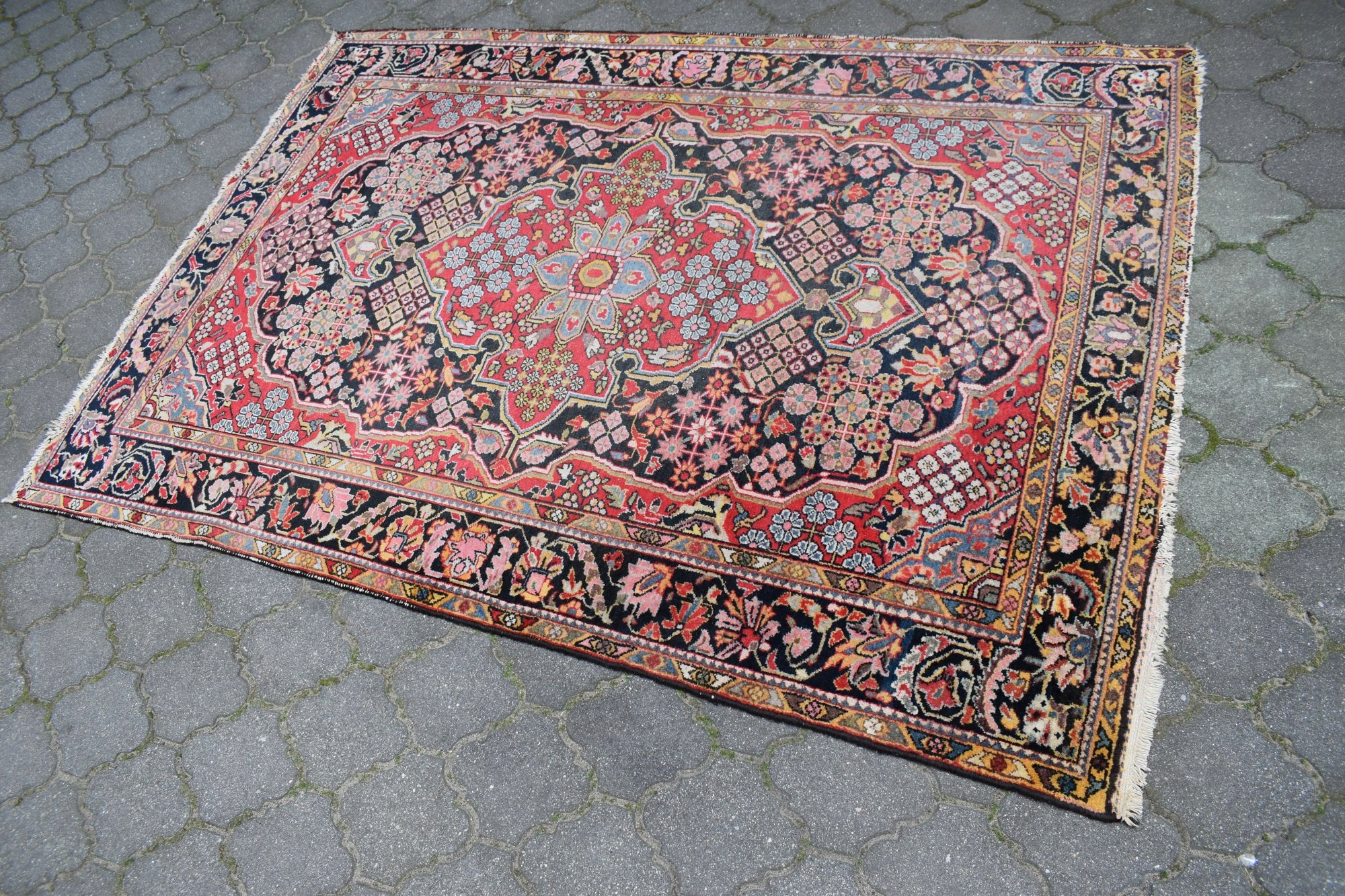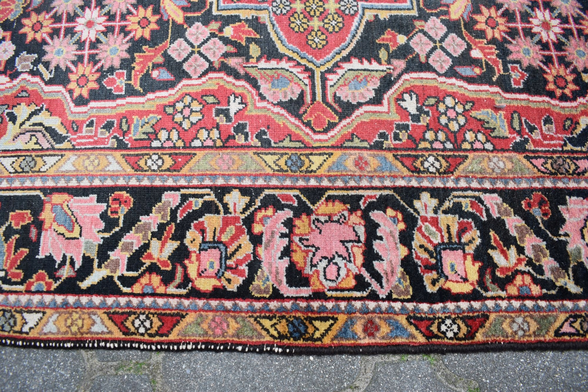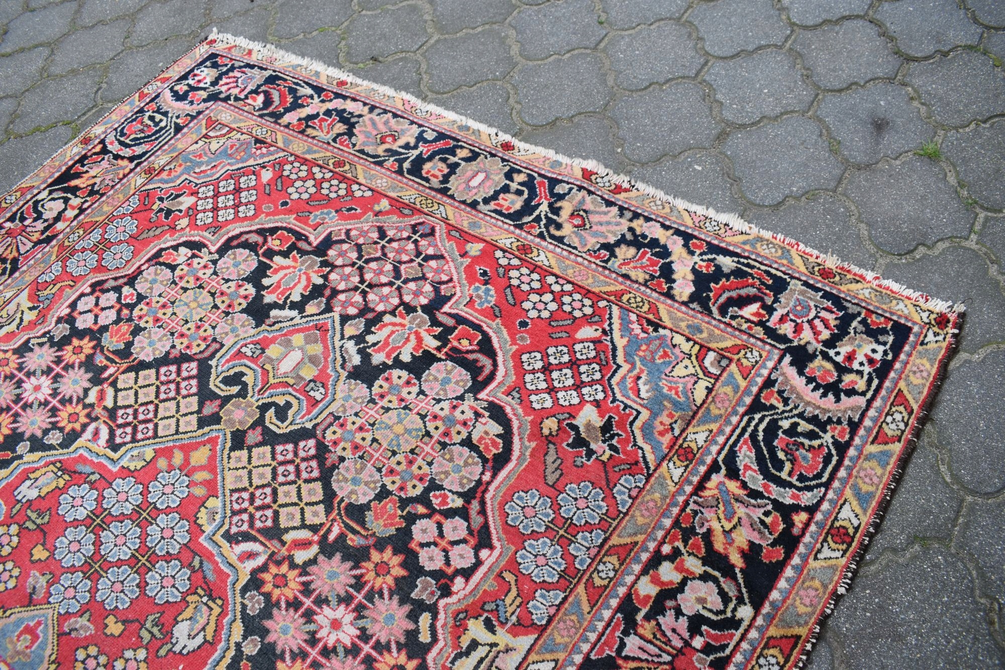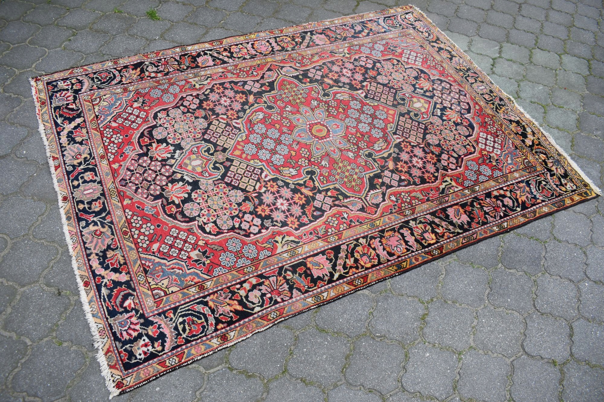 Stan: Dywan używany jak na swoje lata zachowany w stanie dobrym - vintage - odsyłam do galerii. Dla własnego komfortu zalecam odświeżenie.