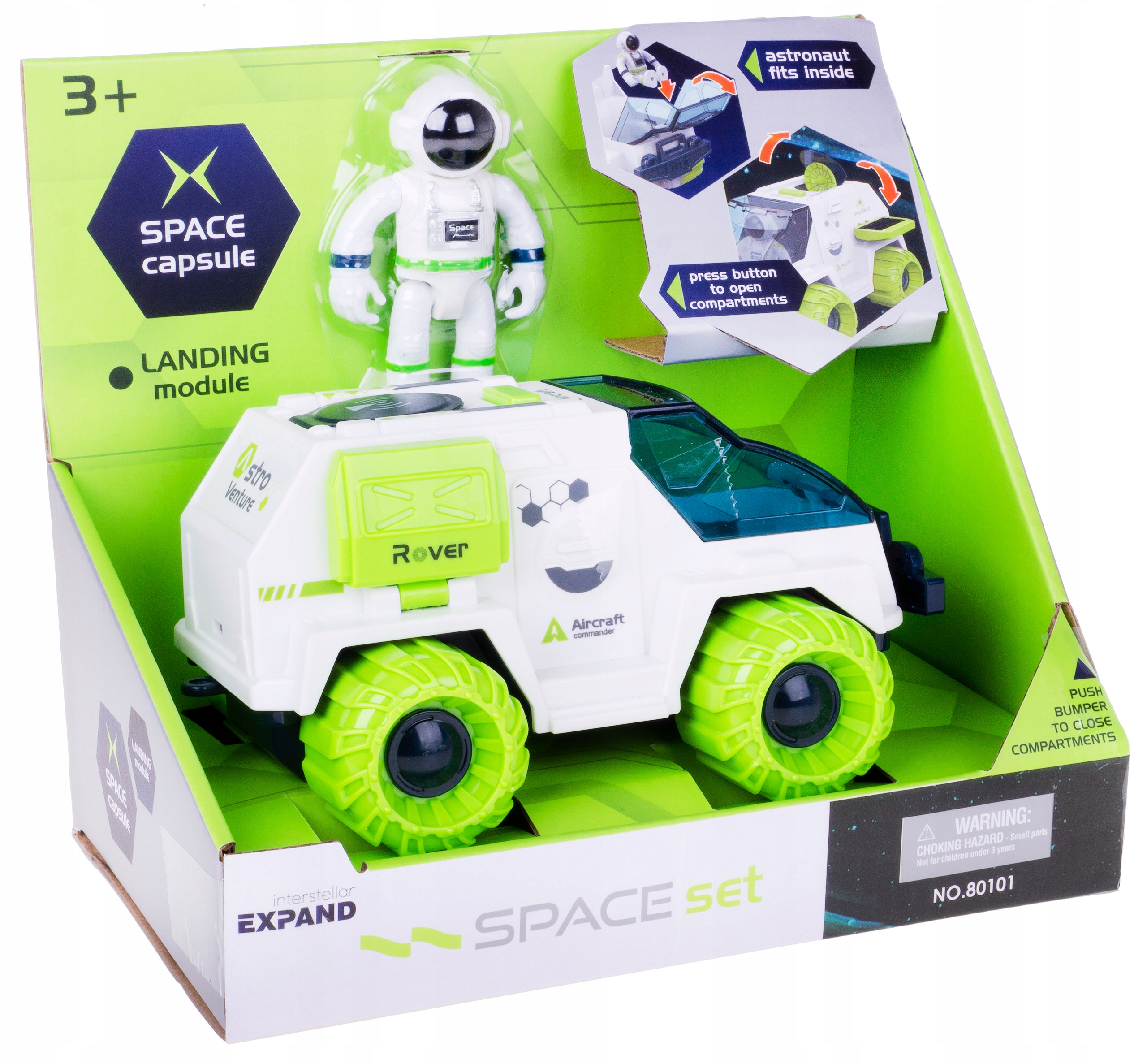 Pojazd wykonany został z mocnego plastiku z napędem friction oraz otwieranym włazem i szerokim kokpitem dla kosmonauty.