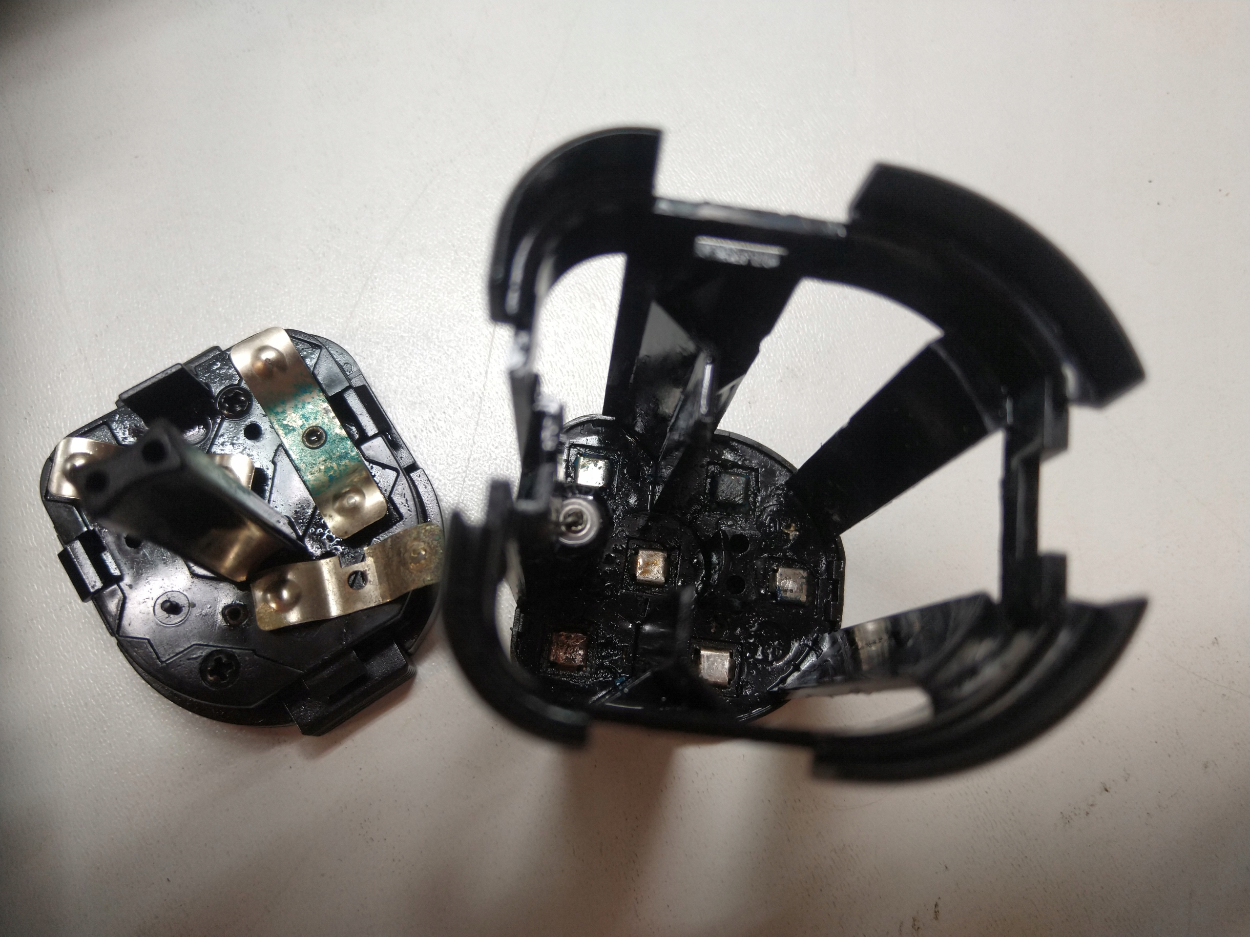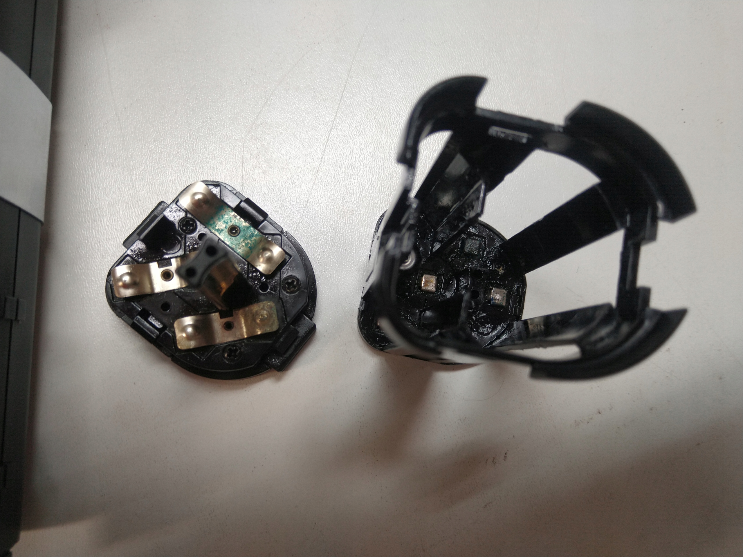 Miejsce na baterie ze śladami zaśniedzenia na stykach.