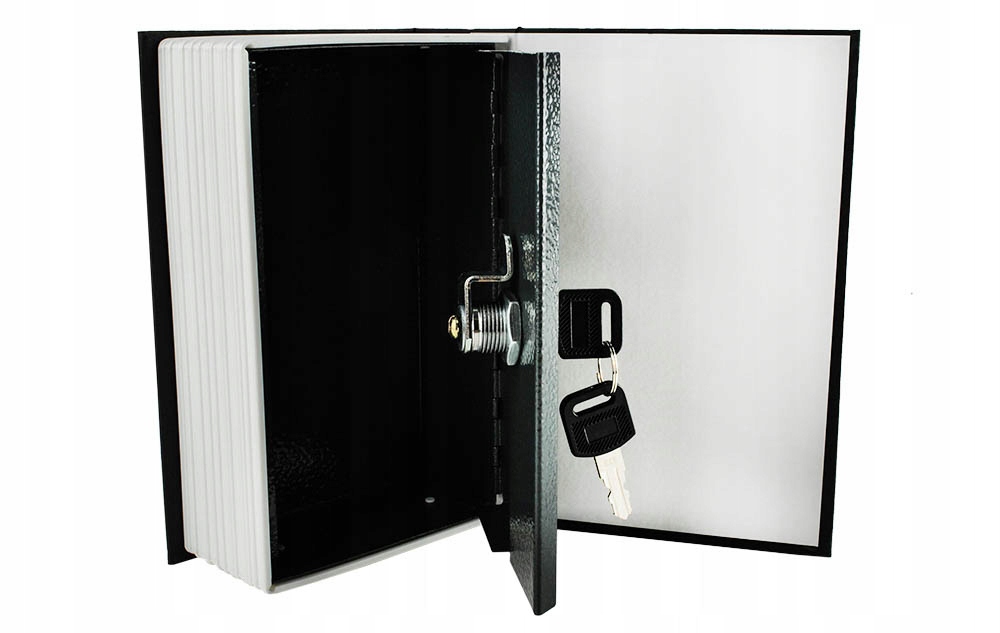 Zewnętrza część sejfu imituje prawdziwą książkę, natomiast wewnętrzna część wykonana została ze stali, dzięki czemu zapewnia ona bezpieczeństwo wszystkim Twoim najcenniejszym przedmiotom. Wewnętrzna stalowa kasetka zamykana jest na klucz, co zwiększa poziom bezpieczeństwa i ochronę Twoich kosztowności.