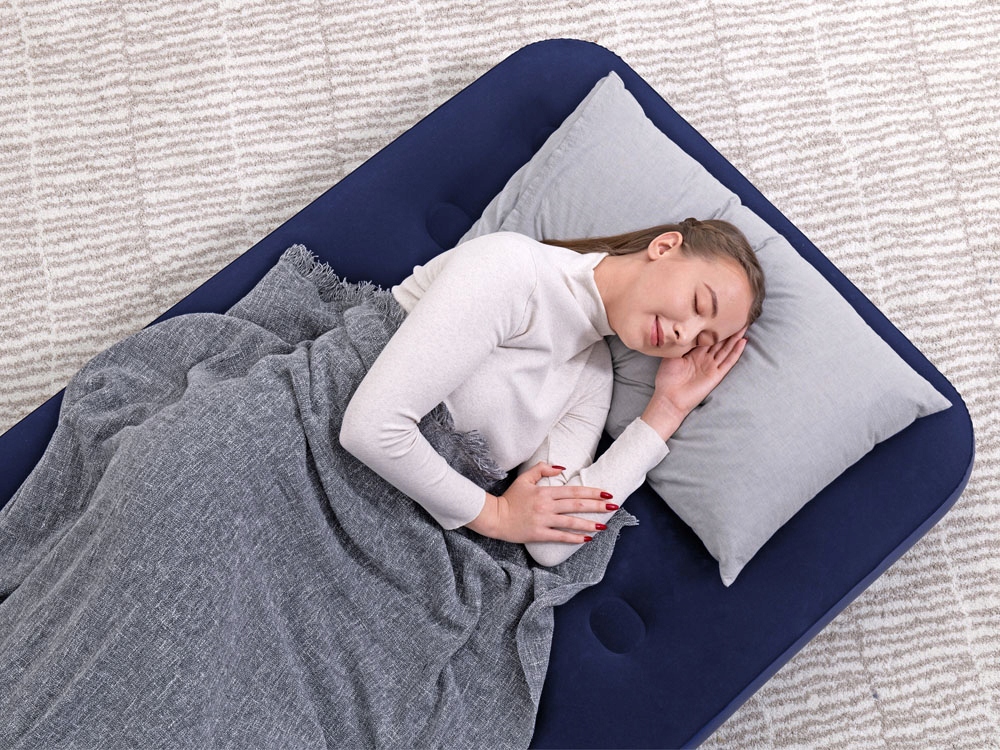 Welurowy materac Pavillo Bestway® w rozmiarze 188 x 99 x 22cm świetnie sprawdzi się wewnątrz pomieszczeń jak i na zewnątrz, sprawdzi się podczas wizyty gości, którzy z wiadomych przyczyn nie będą mogli wrócić do domu i potrzebują noclegu. Idealny na kemping, podczas leżakowania na plaży. Komfortowo i wygodnie.