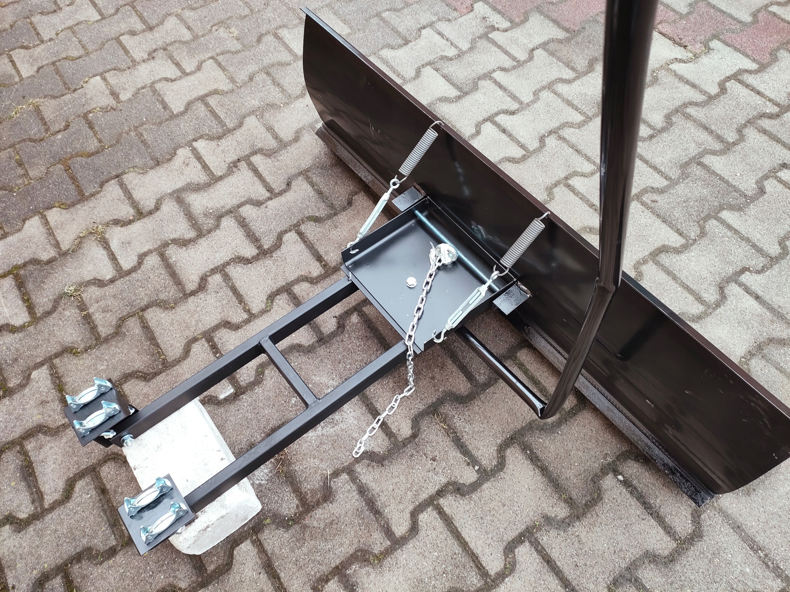 Sprzedam funkcjonalny pług 2 ramienny długości 120 cm na konstrukcji ruchomej z rączką i łańcuszkiem, reaguje na nierówności np. kamień, trawa, nierówna kostka , jest ruchomy na sprężynach. Pług odgarnia śnieg w lewą , prawą stronę i na wprost .Posiada gumę oraz rączkę do unoszenia ręcznego , wyposażony w łańcuszek do ręcznego transportu.Mocowanie jest bardzo proste , tak jak i niezależne od konstrukcji pługa, mechanizmu uchylnego, mocowanie montuje się na stałe do pojazdu( za pomocą śrub montażowych które są w zestawie ) np. quada , ciągniczka, kosiarki , glebogryzarki i różnych pojazdów mechanicznych.Pług ma bardzo solidną i stabilną konstrukcję i również nadaje się pod wyciągarkę elektryczną. Kolor czarny.