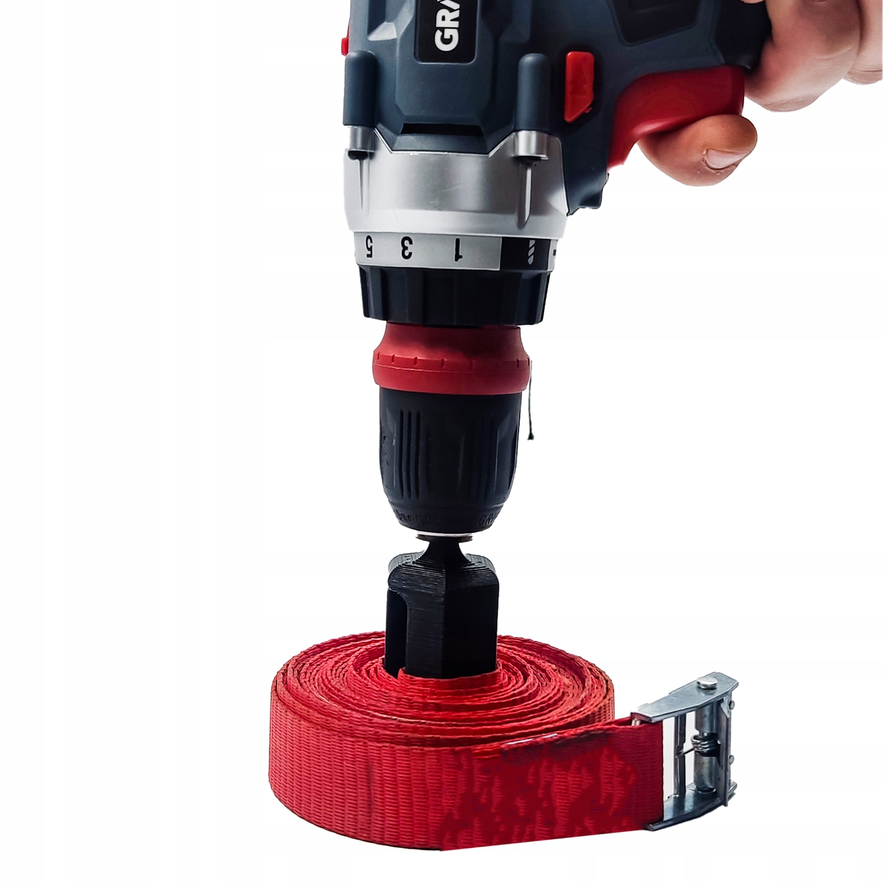 Uniwersalność - zwijarka do pasów zaprojektowana została tak aby pasowała do różnych rodzajów wkrętarek