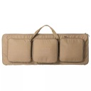 Pokrowiec Helikon Double Upper Rifle Bag został zaprojektowany tak, by w możliwie kompaktowym formacie, bezpiecznie i wygodnie przenosić karabinek AR w konfiguracji z dwoma lufami z założoną optyką, dwa karabinki AR krótkolufowe lub dwa karabinki AK w podstawowej konfiguracji. Torbę można przenosić za pomocą czterech mocnych uchwytów oraz na rozpinanych i w razie konieczności chowanych do specjalnych kieszeni szelkach. Po zewnętrznej części pokrowca znajdują się trzy duże kieszenie. Każda z nich ma nieco inaczej zaprojektowane wnętrze. W każdej znajdują się: kieszeń zamykana na suwak oraz panele velcro przystosowane do zintegrowania z insertami Helikon Versatile Insert System. Komora główna torby wyposażona jest w system ogniw z taśmy, przez które przewlekać można w dowolnej konfiguracji obejmy velcro przytrzymujące broń. Elastyczne troki zmieszczą wyciory i elementy czyszczące karabinki, a specjalnie zaprojektowane usztywniane kieszenie - ograniczniki - zapobiegną przesuwaniu się broni podczas transportu. Pokrowiec wykonany z Cordury 500D.