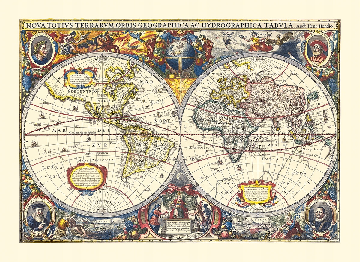 Mapa Świata Hendrika Hondiusa, New Map of the World (Atlas Novus, 1641)