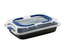 Cechy: - Forma wykonana z stali węglowej odpornej na wysokie temperatury. - Pokrywka wykonana z tworzywa sztucznego. - Temperatura i czas pieczenia - maksymalnie 250°C, nie dłużej niż 2 godziny. - Łatwość mycia, można myć w zmywarce do naczyń. - Wymiary: 36 x 24.5 x 5.5 cm