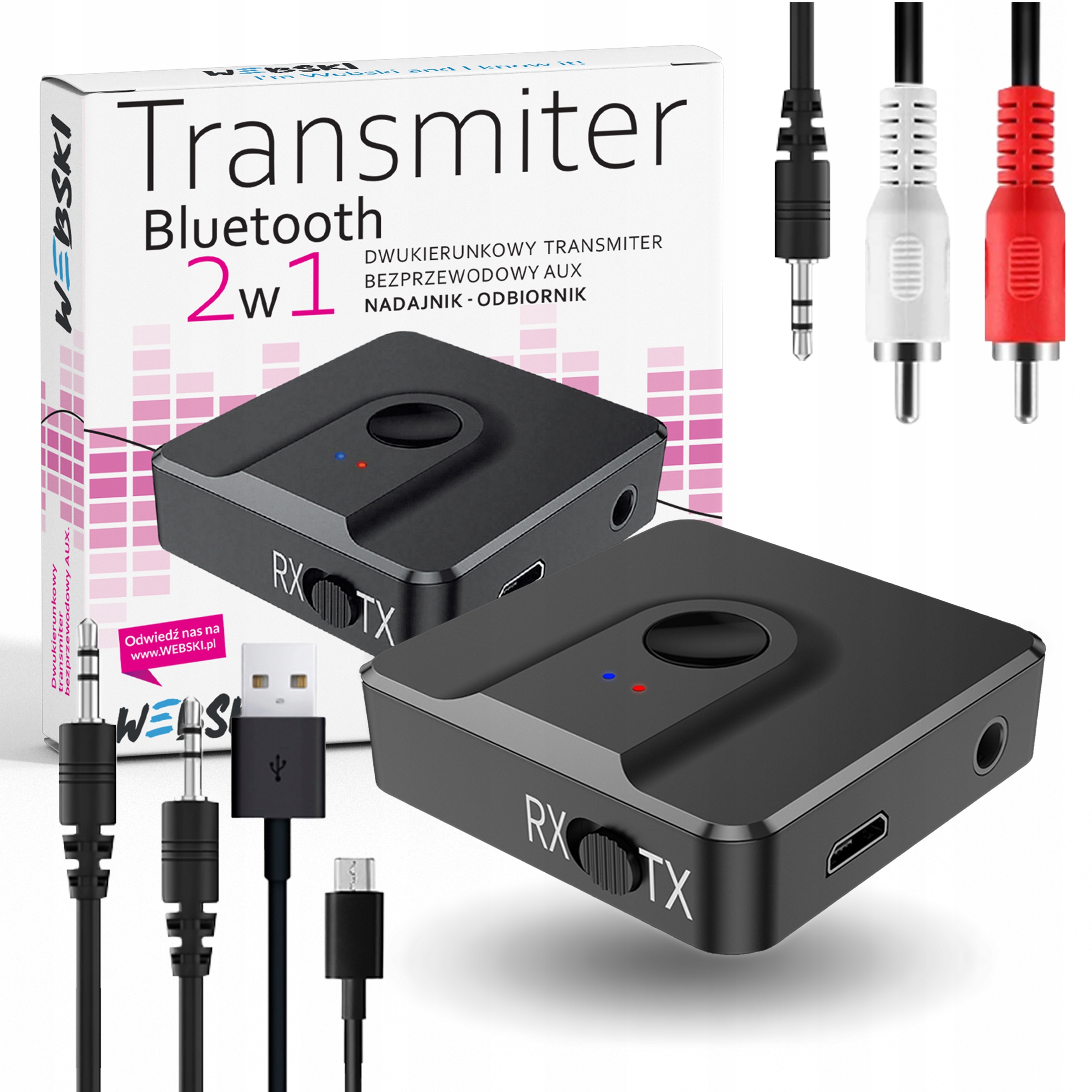 W zestawie otrzymujesz transmiter oraz komplet przewodów. Zestaw od razu gotowy do pracy. Dwustronny przewód stereo Jack 3.5mm oraz przewód Jack 3.5mm/ 2xChinch Stereo do urządzeń starszego typu.