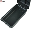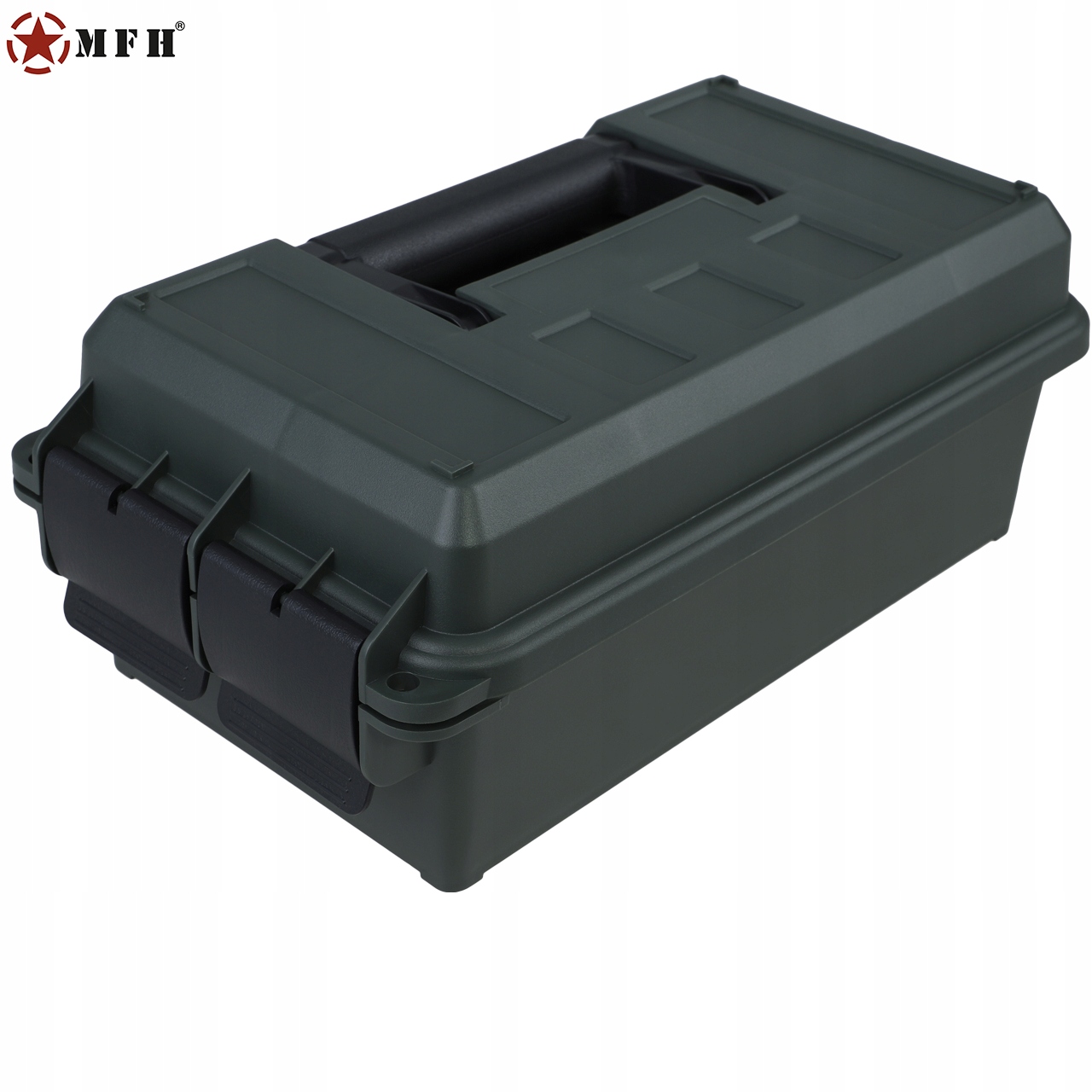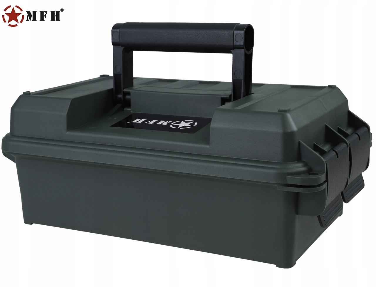 Na górnej klapie znajduje się składany uchwyt transportowy. Ponad to klapa wyposażona została w uszczelkę, która chroni zawartość przed kurzem oraz wilgocią. Pudełko zamykane jest klamrą na dwa zatrzaski.