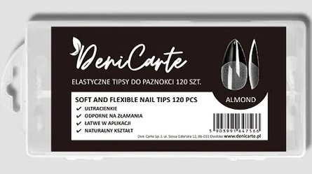 Elastyczne tipsy w kształcie migdałka zostały zaprojektowane z myślą o maksymalnym komforcie noszenia i naturalnym wyglądzie. Dzięki zwiększonej giętkości lepiej dopasowują się do płytki paznokcia, zapewniając długotrwałą stylizację.