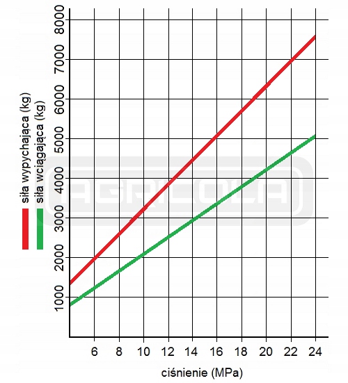 Таблица, показывающая изменение толкающей силы в зависимости от изменения давления масла в гидравлической системе (рис.):