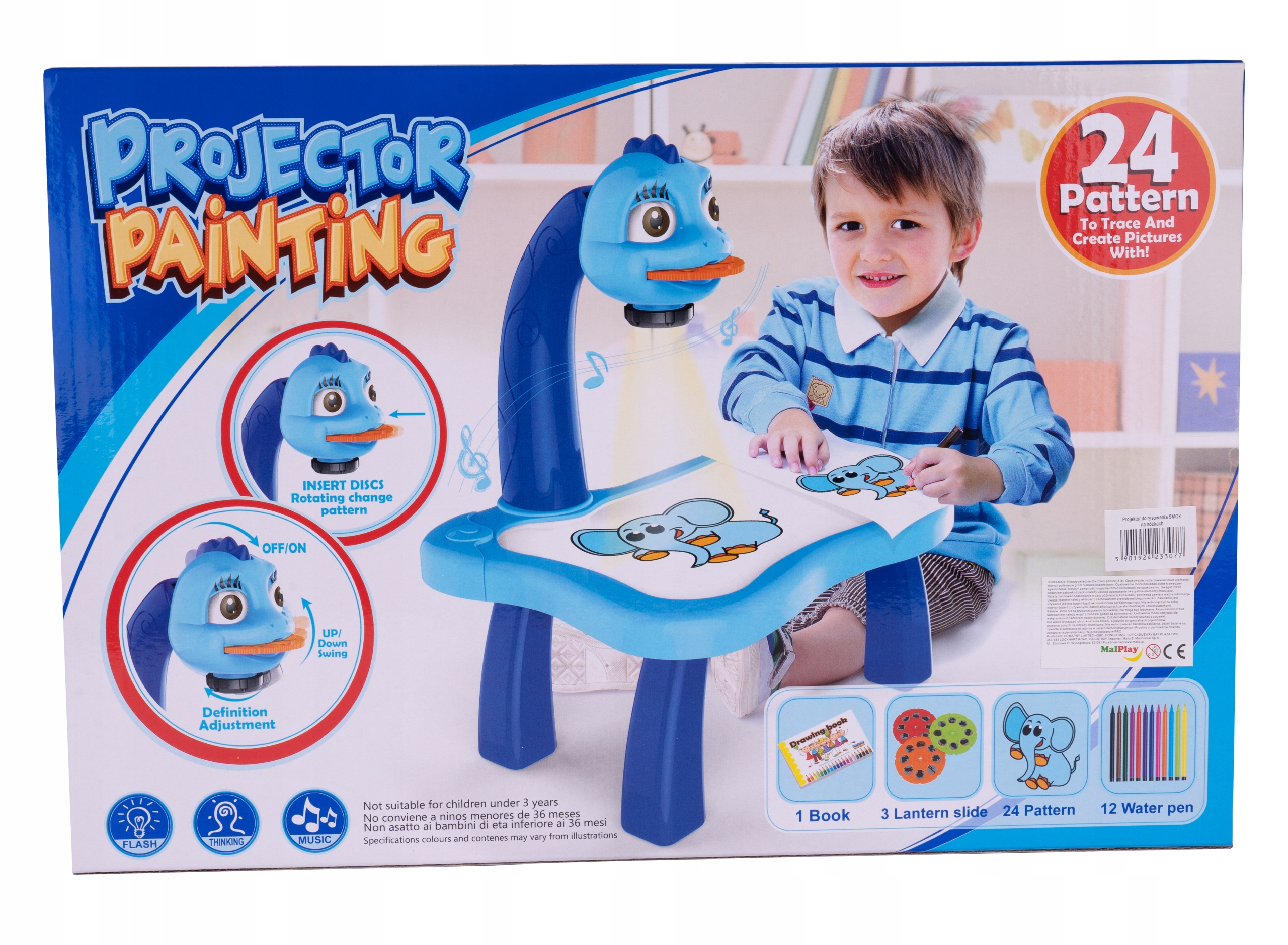 Wszystkie dzieci uwielbiają rysować. Ten rzutnik umożliwia stworzenie pięknych obrazków za pomocą światła! Do rzutnika dołączone są aż 3 wymienne dyski, a na każdym z nich jest po 8 różnych wzorów. Łącznie dziecko może nauczyć się rysować aż 24 różne rzeczy lub np. tworzyć kolaże!