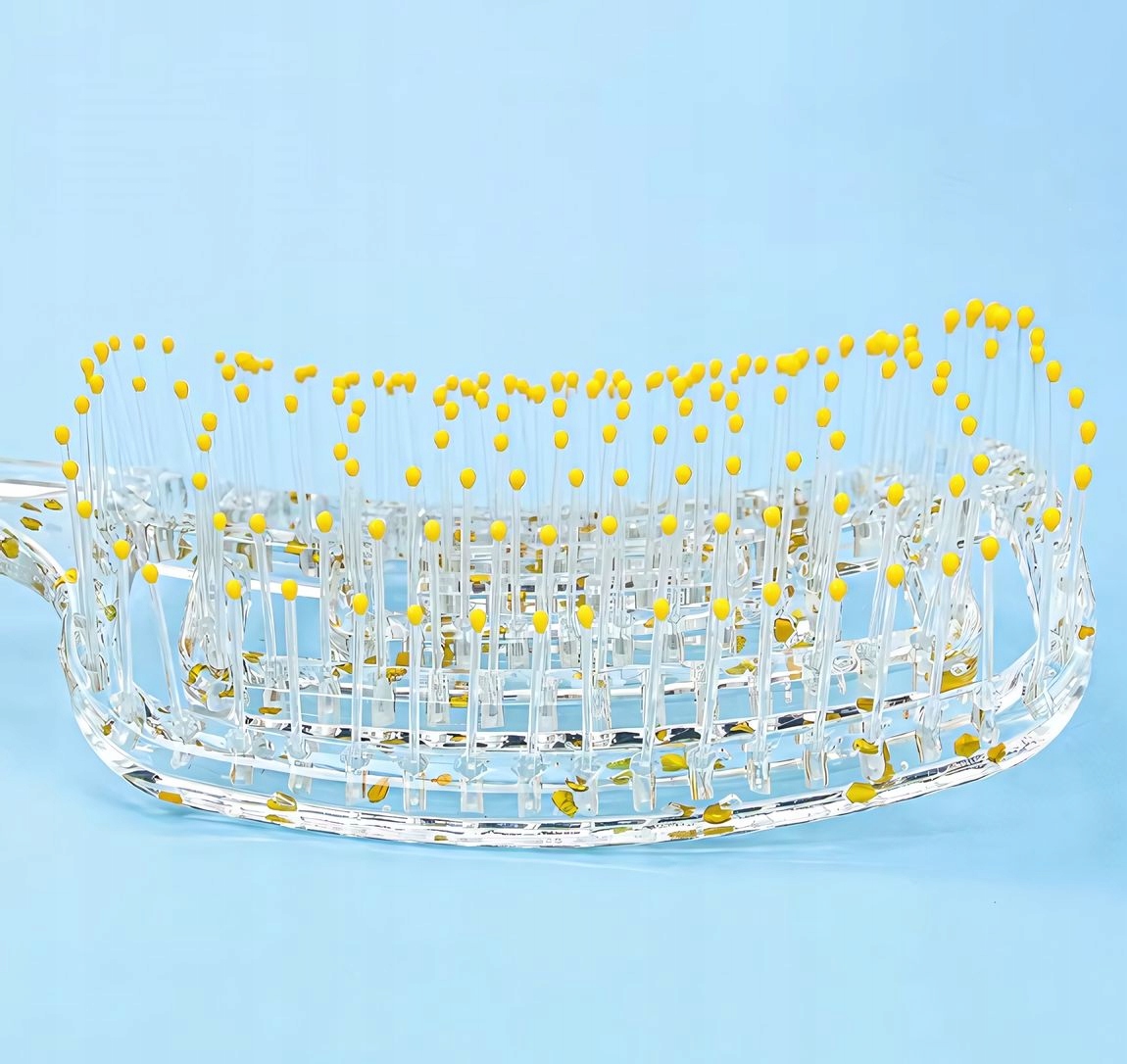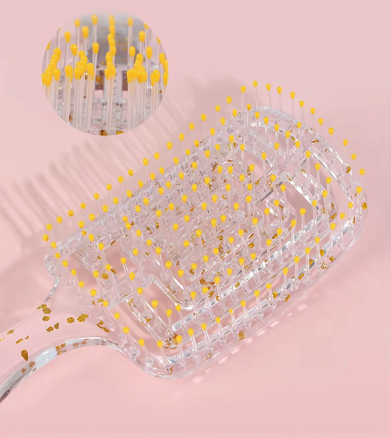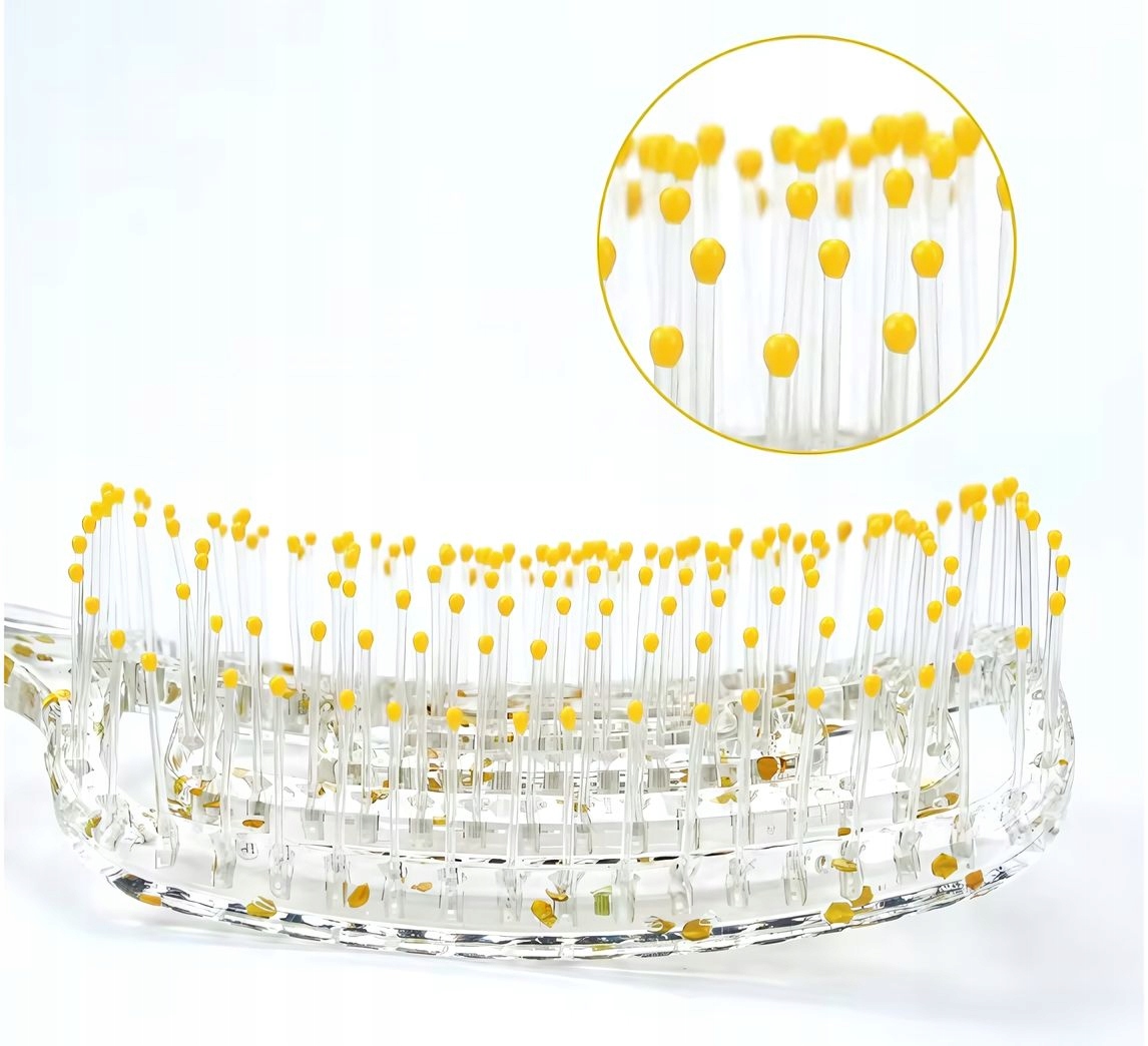 Szczotka ma zarówno włosie dzika, jak i nylonowe. Włosie z nylonu jest nieco dłuższe niż włosie dzika, co ułatwia rozczesywanie. Krótsze włosie dzika zmiękcza, kondycjonuje i dodaje połysku włosom.