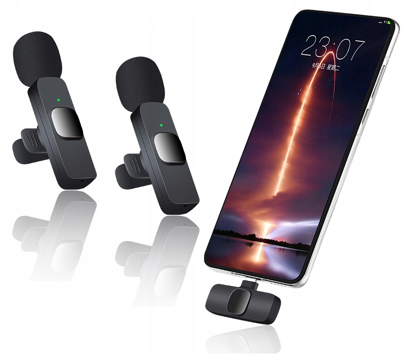 Urządzenia jest wyposażone w mały mikrofon, który umożliwia dyskretną i wygodną transmisję dźwięku bez konieczności trzymania mikrofonu w ręku. Odbiornik mikrofonu podłączamy do telefonu/tabletu/komputera (złącze USB-C + adapter na Lightning).