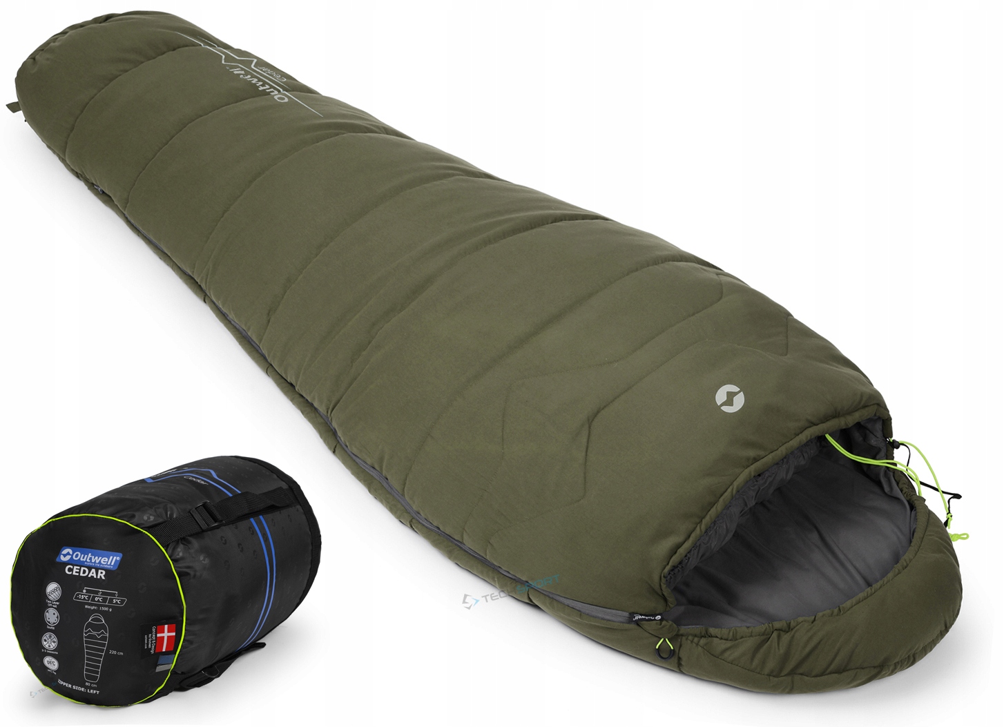 Niezwykle komfortowy śpiwór renomowanej duńskiej firmy Outwell. Dzięki zastosowaniu najwyższej jakości materiałów śpiwór jest nie tylko wytrzymały, ale także bardzo wygodny w użytkowaniu. Wysokiej jakości podwójne syntetyczne wypełnienie IsoFill® zapewnia odpowiedni poziom ciepła przy zachowaniu niewielkiej wagi śpiwora, a przy tym jest stosunkowo niewrażliwy na wilgoć (w przeciwieństwie do śpiworów puchowych). Wyposażono go w mnóstwo innowacyjnych i opatentowanych rozwiązań technologicznych, gwarantujących niezrównany komfort w użytkowaniu, takich jak: Zamek z funkcją auto-lock oraz Easy Glide, dodatkowy kołnierz termiczny utrzymujący ciepło wewnątrz śpiwora czy specjalne poszerzenie śpiwora na wysokości ramion. Wykonany z najwyższej jakości materiałów: Wewnątrz zastosowano szczotkowany poliester - bardzo miły w dotyku (nie śliski), przypominający bawełnę, a przy tym dużo szybciej schnący i odprowadzający wilgoć. Dodatkowa listwa ANTI-BITE zabezpiecza materiał przed wcinaniem się w zamek. Praktyczny pokrowiec posiada dodatkowo pasy kompresujące. Śpiwór nowy, oryginalny z kompletem metek.