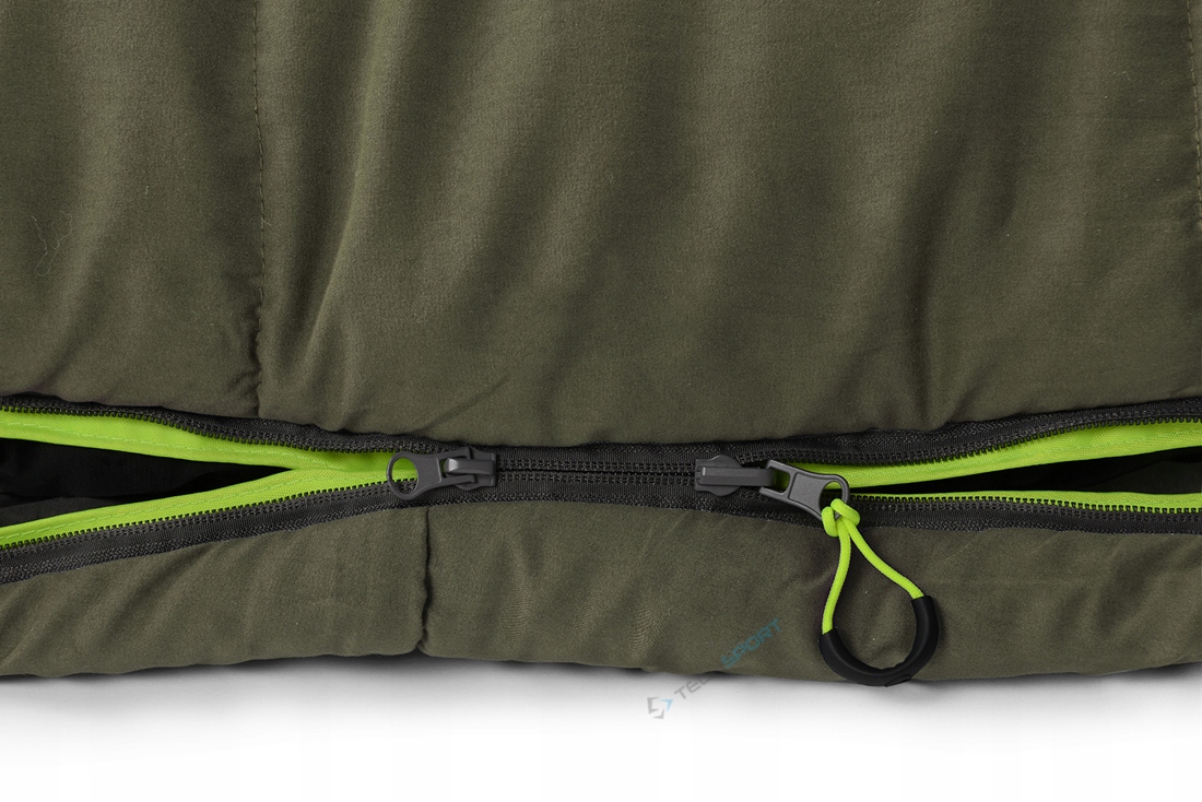 Podwójny zamek z możliwością wietrzenia śpiwora od dołu. Główny zamek posiada funkcję auto-lock, dzięki czemu nie rozpina się samoczynnie. Pracuje gładko i nie zacina się. Można go również używać od wewnątrz: