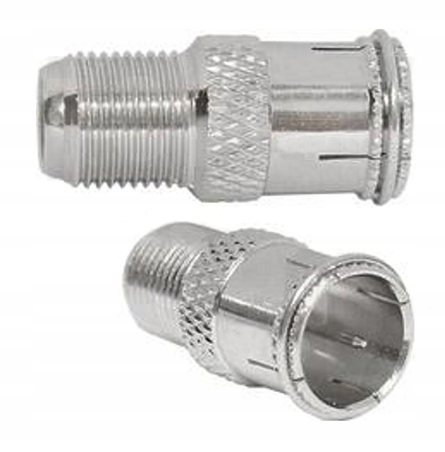 Przejściówka antenowa z gniazda F na wtyk F szybki (bez konieczności nakręcania).