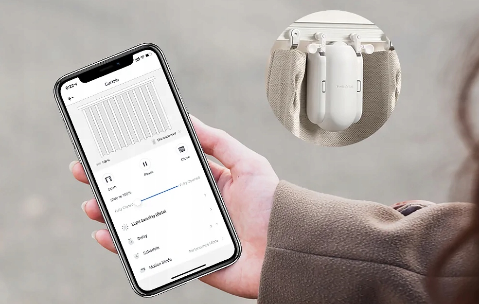 SwitchBot Curtain pozwala na ustawienie automatyzacji na podstawie poziomu natężenia oświetlenia lub natężenia światła słonecznego otaczającego Twoje urządzenie. Dzięki temu SwitchBot Curtain można ustawić w taki sposób, aby zasuwał zasłony nocą i rozsuwał zaraz po wschodzie słońca, co pozwoli Ci na znacznie głębszy sen i naturalną pobudkę, przy świetle dziennym, a co za tym idzie lepszy humor i więcej energii w ciągu dnia.