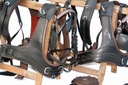 Uprząż chomątowa Francuska na parę koni roz.COB . Uprząż wykona w całości bardzo dobrej selekcjonowanej skóry licowej ,bardzo miękkiej i miłej w dotyku ,we wszystkich elementach uprzęży wszyta taśma ,która ma zadanie wzmocnienie skóry.Profilowane piersi wyposażone w napierśniki ,popręgi anatomicznie profilowane ogłowia anatomiczne w części potylicznej i nachrapnik zrobiony na miękko Okucia wykonane ze stali nie rdzewnej .jedyna taka uprząż na rynku ,perfekcyjnie wykonanie.Polecam
