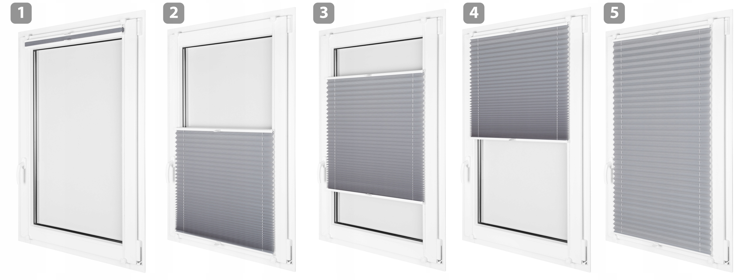 ✅ płynna regulacja - pozwala zasłonić dowolny fragment szyby, zatrzymując materiał na wybranej wysokości