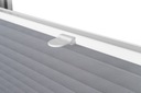Plisa porusza się w świetle szyby, zamontowana na wkręty do górnej i dolnej listwy przyszybowej.