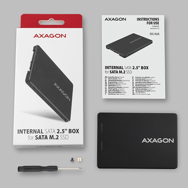 Wewnętrzna obudowa 2.5" AXAGON RSS-M2SD z interfejsem SATA jest przeznaczony do dysków SSD SATA M.2 SSD.