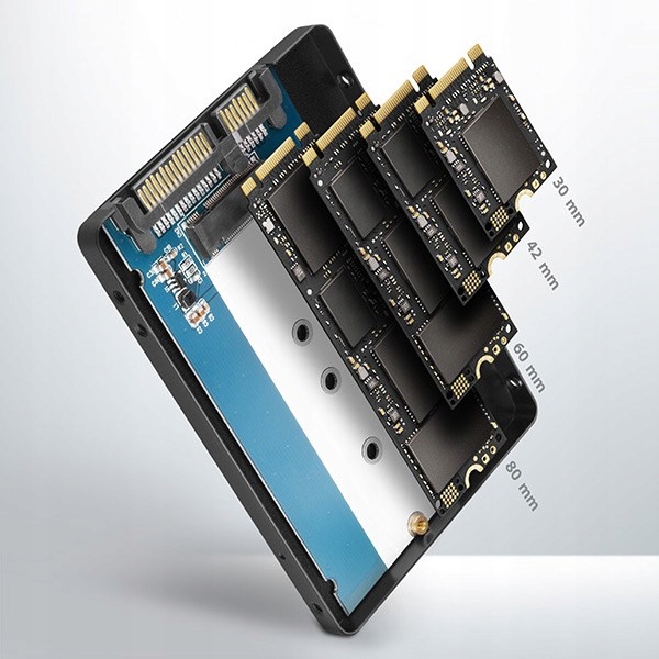 • wewnętrzny boks 2.5" SATA do SATA M.2 SSD,